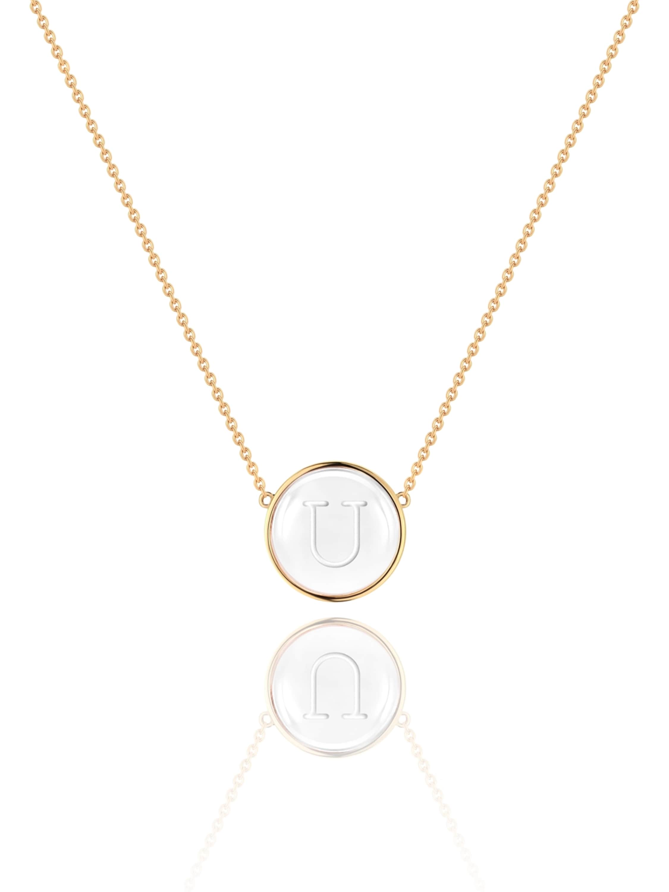Necklace with a letter U pendant in yellow gold with rock crystal weighing 6.20 ct.