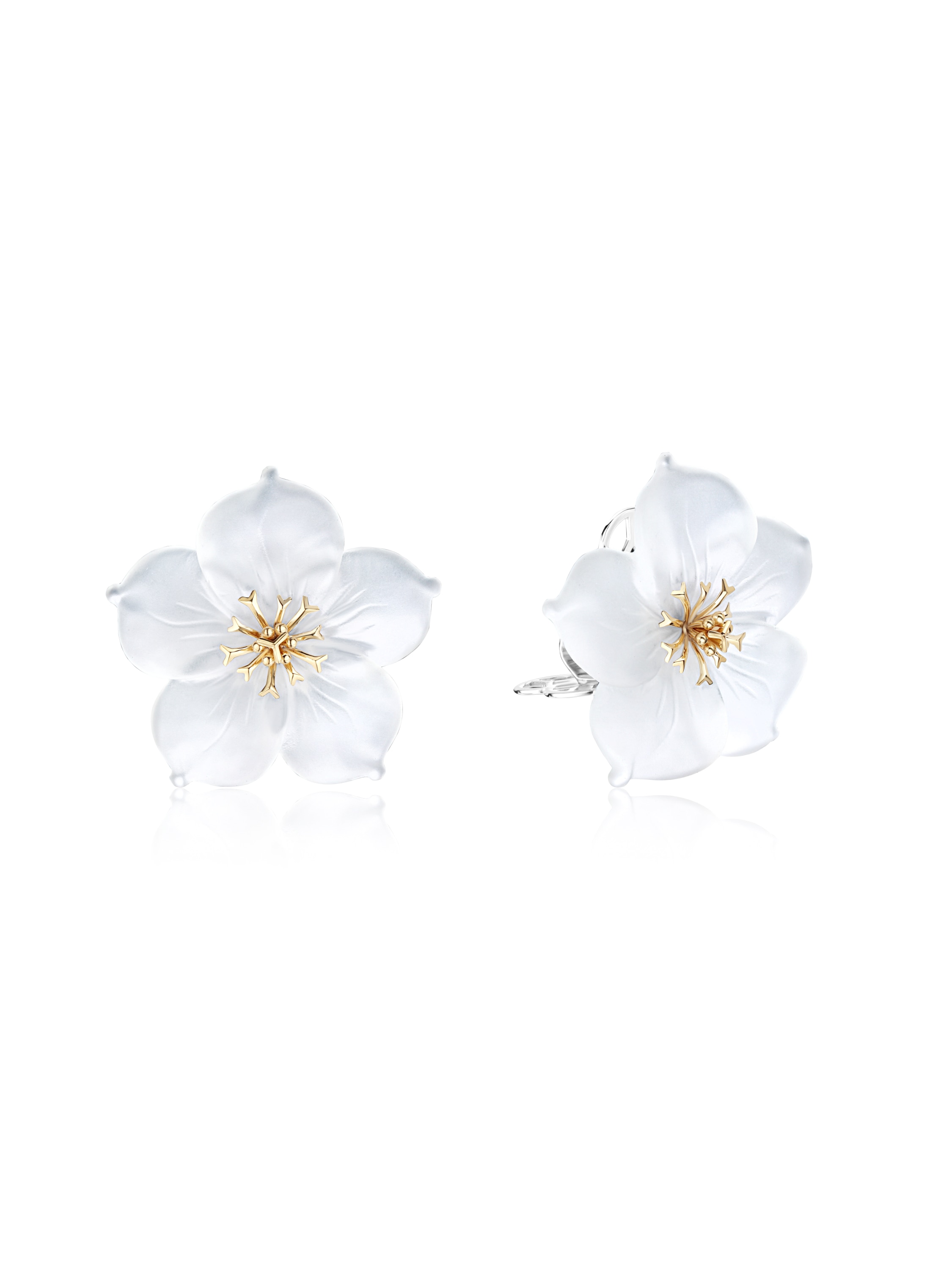 585 gold studs with 2 carved quartzes 50.18 ct