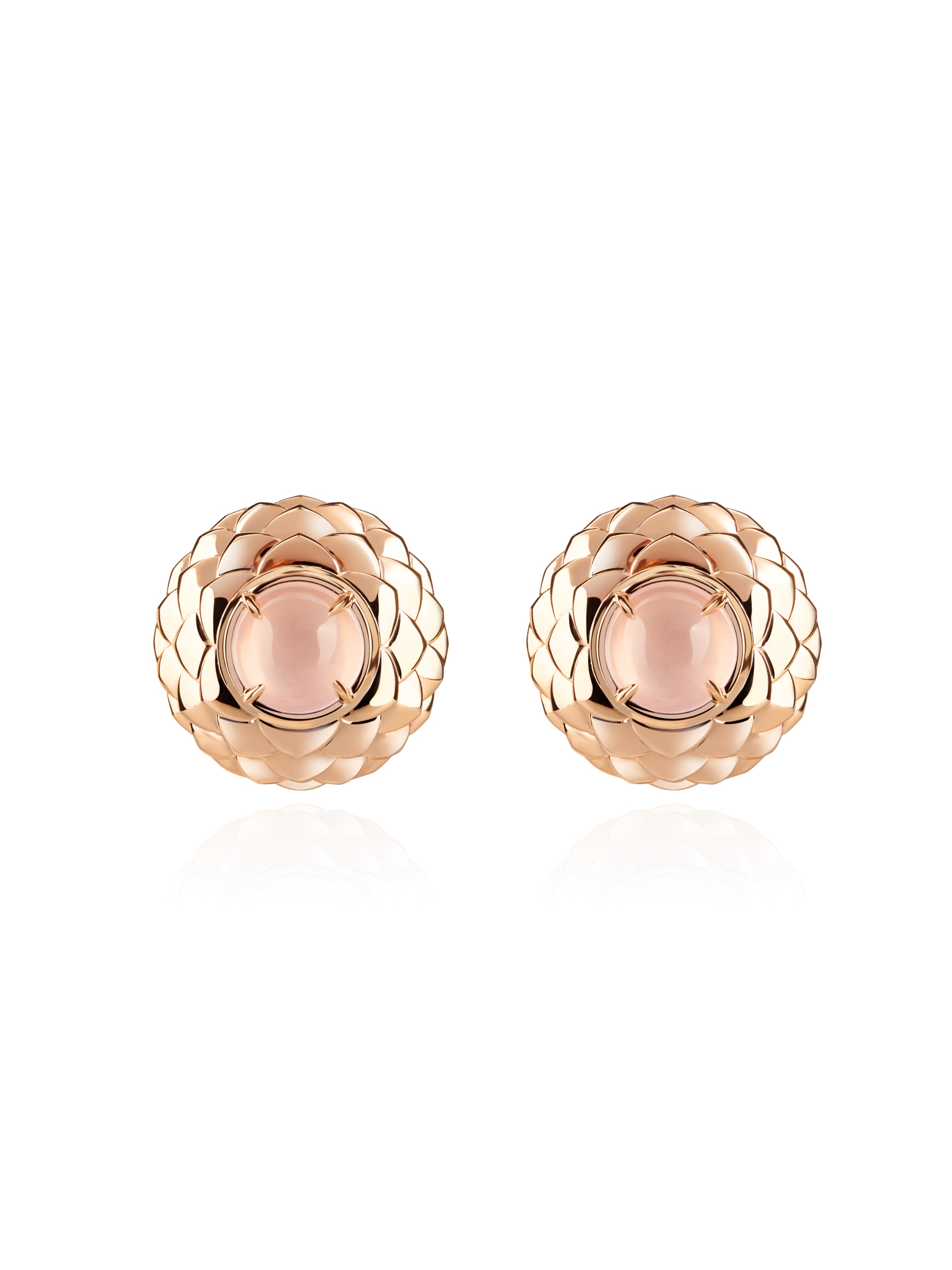 Rose gold earrings with 2 round-cut rose quartzes, 27.07 ct.