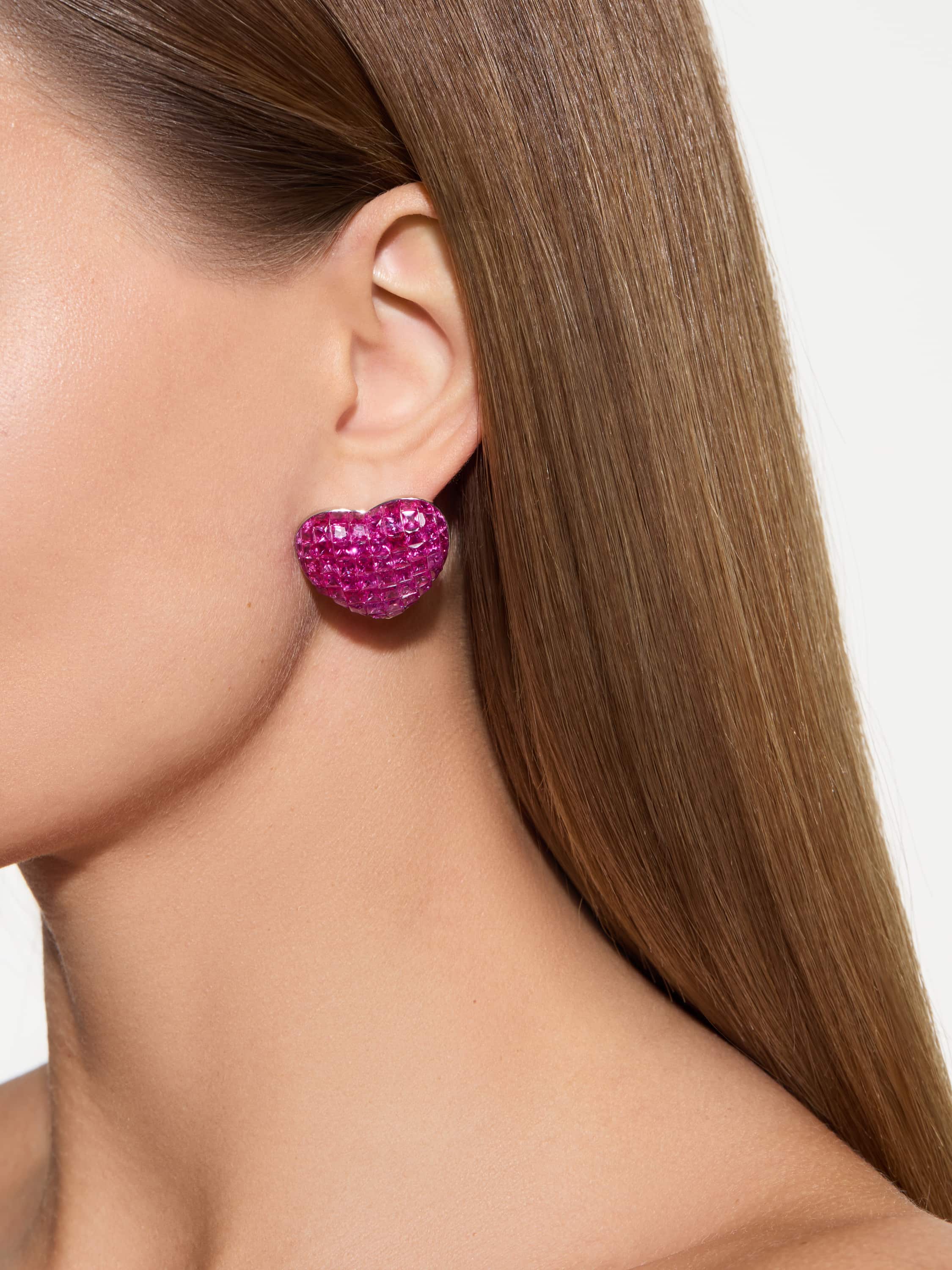 White gold stud earrings with 146 round-cut rubies with a total weight of 24.83 ct.