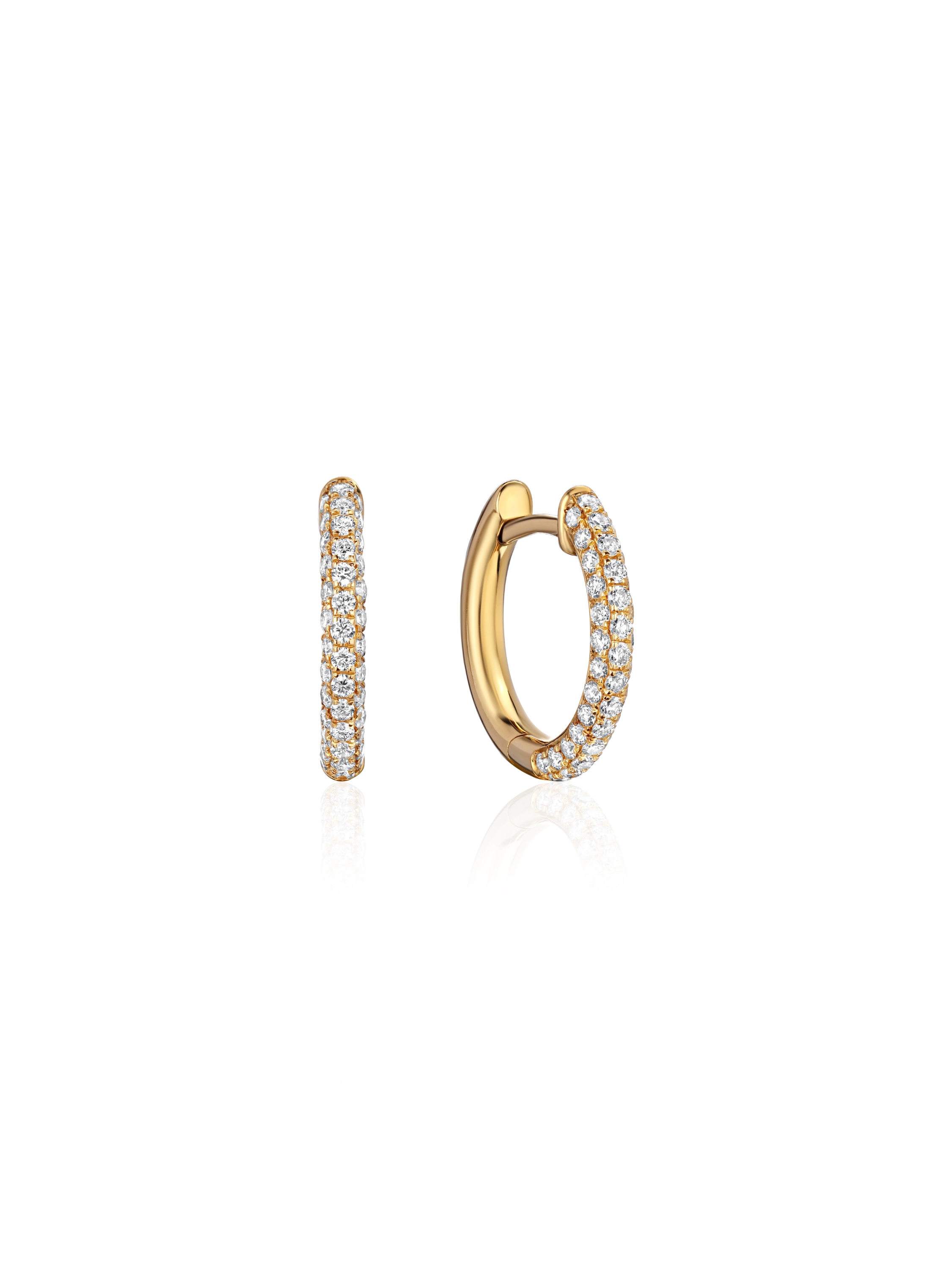 Yellow 750 gold hoops with 80 round diamonds 0.38 ct.
