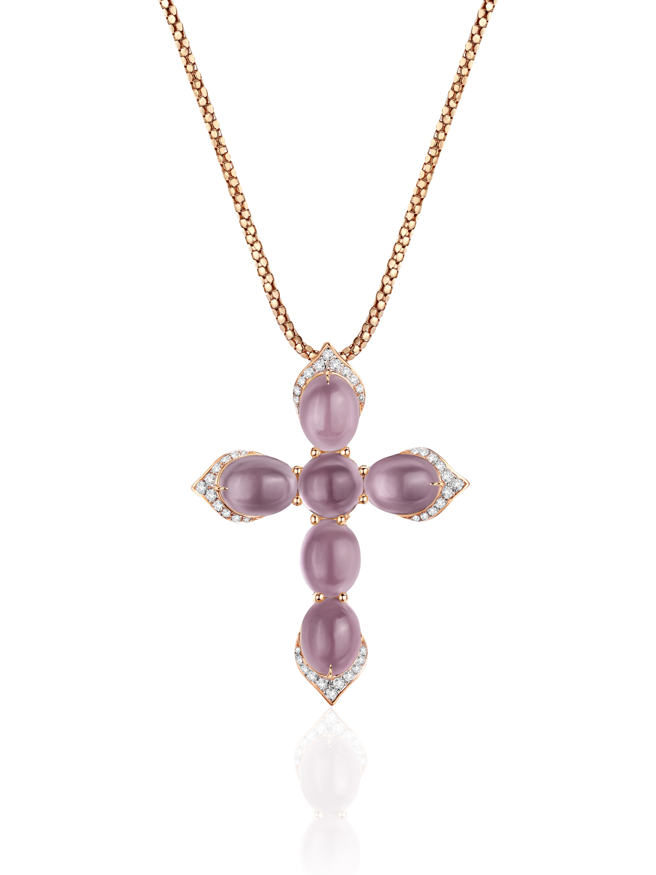 Necklace with a cross-shaped pendant with 6 round amethysts 13.41 ct and 44 round diamonds 0.39 ct.