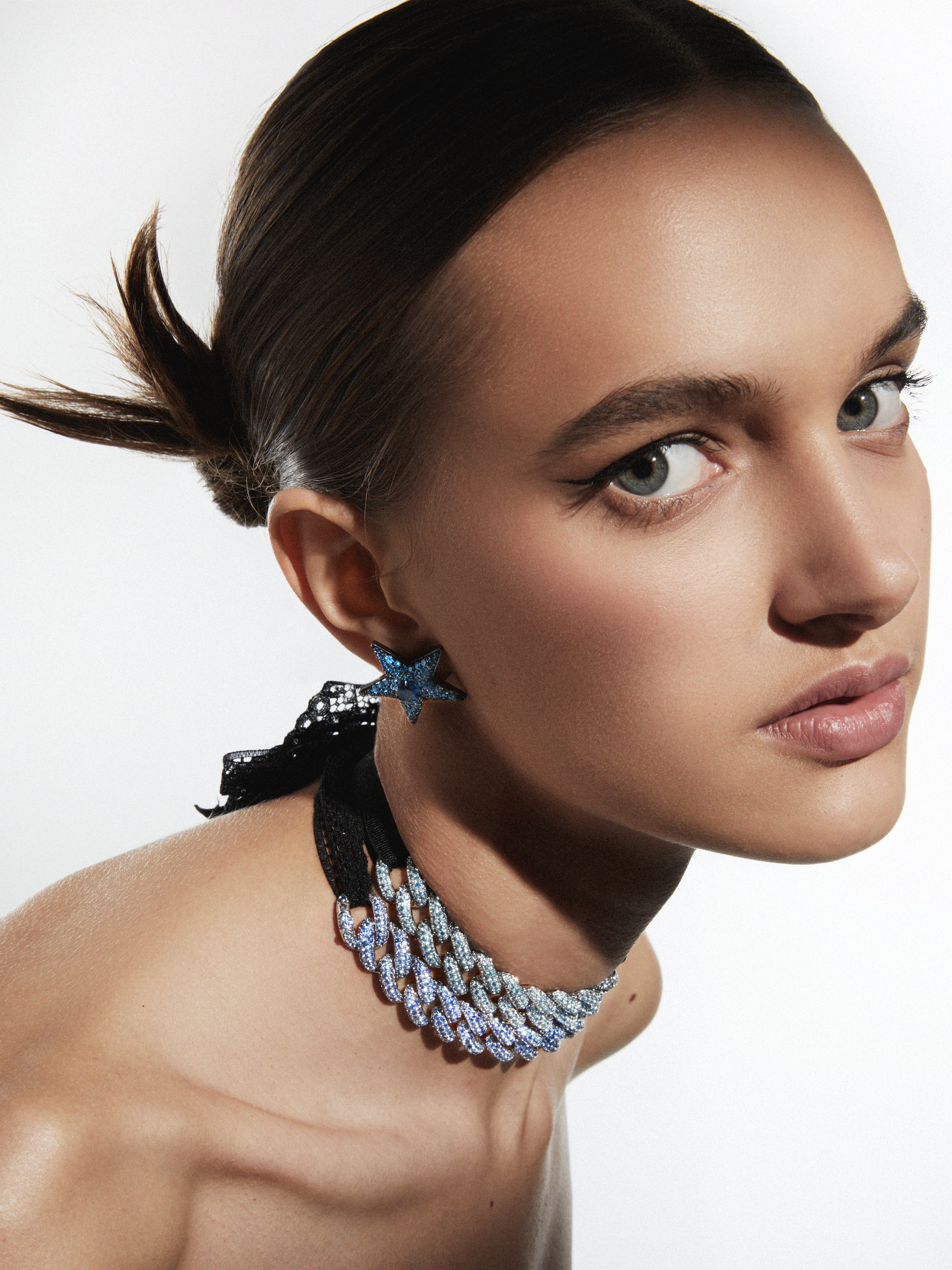 Transformable bracelet made of 18K white gold with 866 round aquamarines weighing 13.66 ct.