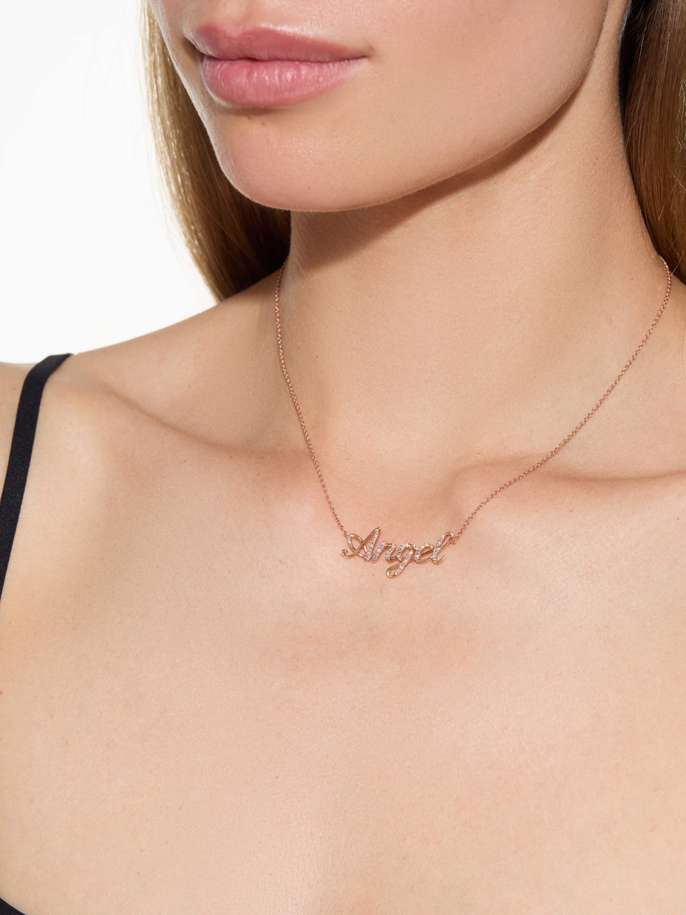 Necklace with “Angel” pendant in rose gold with 44 round-cut diamonds weighing 0.18 ct.