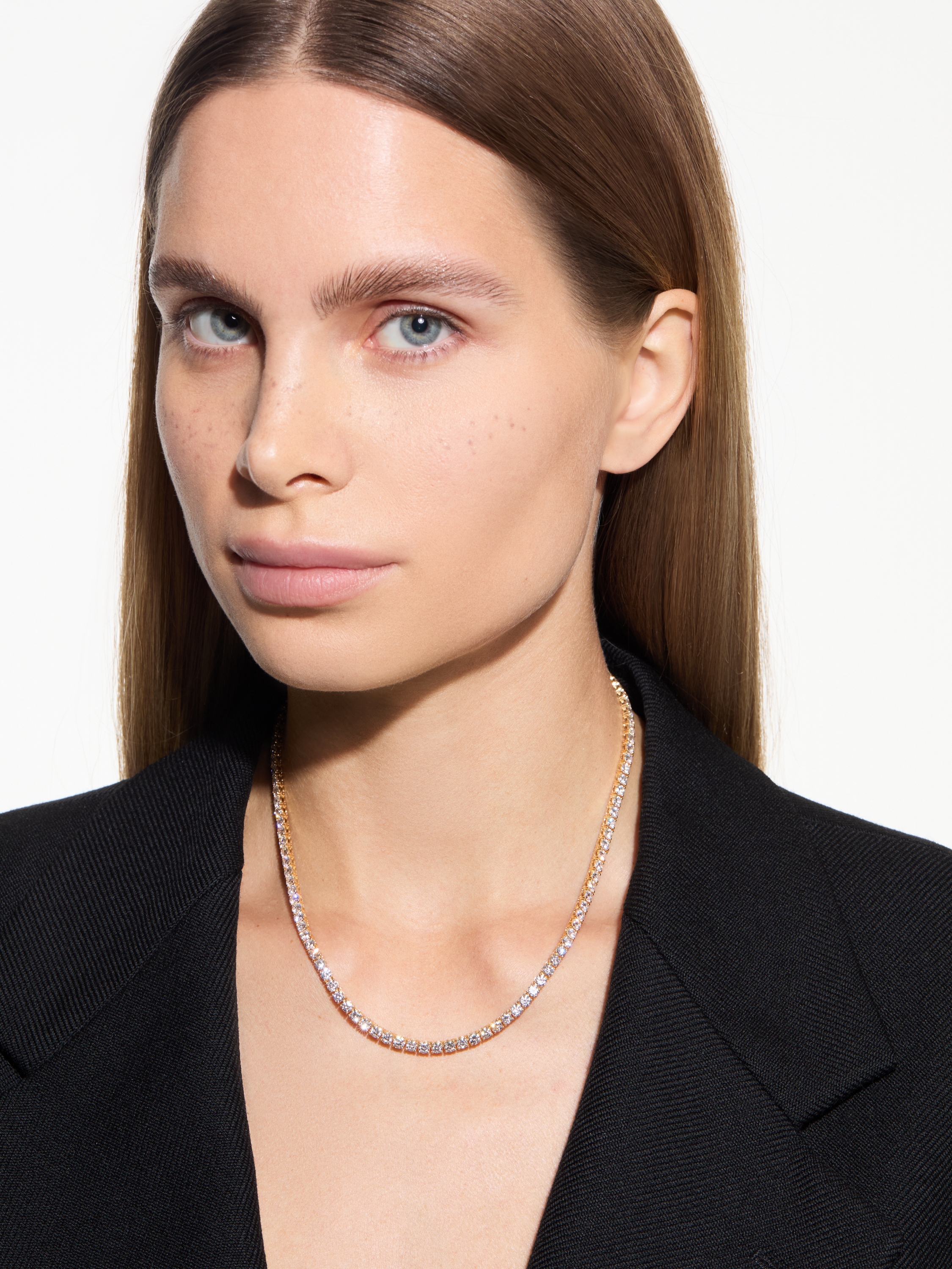 Yellow gold necklace with 115 LG round brilliant-cut diamonds 17.13 ct.