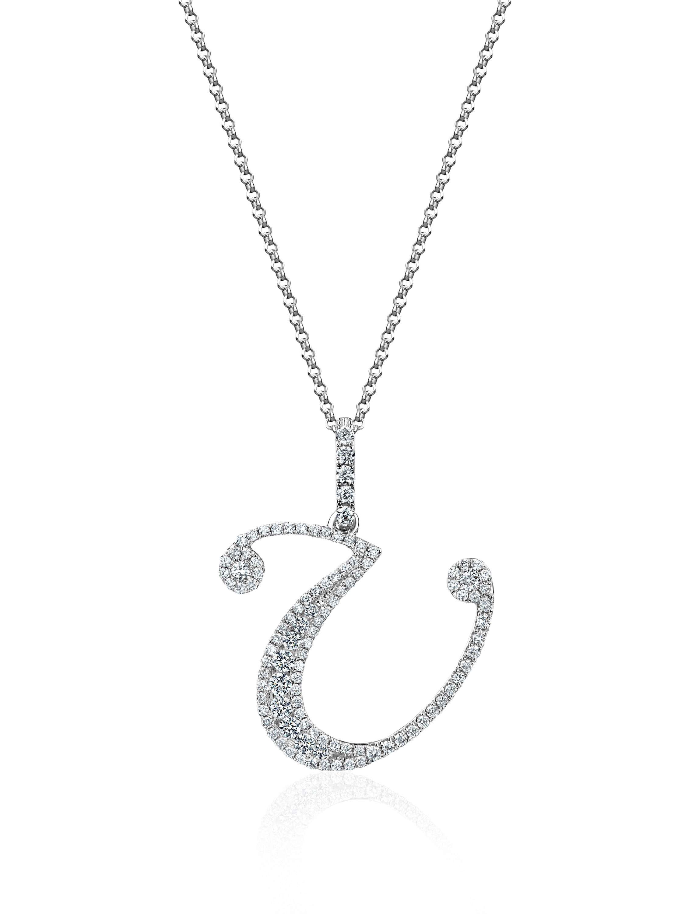 White gold necklace with a U-shaped pendant set with 107 round brilliant-cut diamonds with a total weight of 0.48 ct.