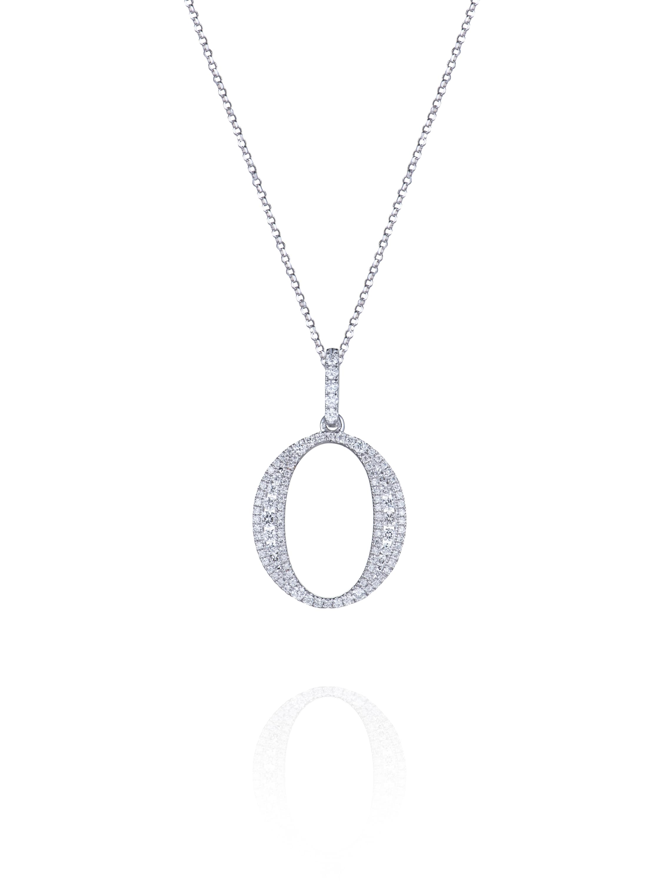 White gold necklace with an O-shaped pendant with 104 round diamonds totaling 0.53 ct.