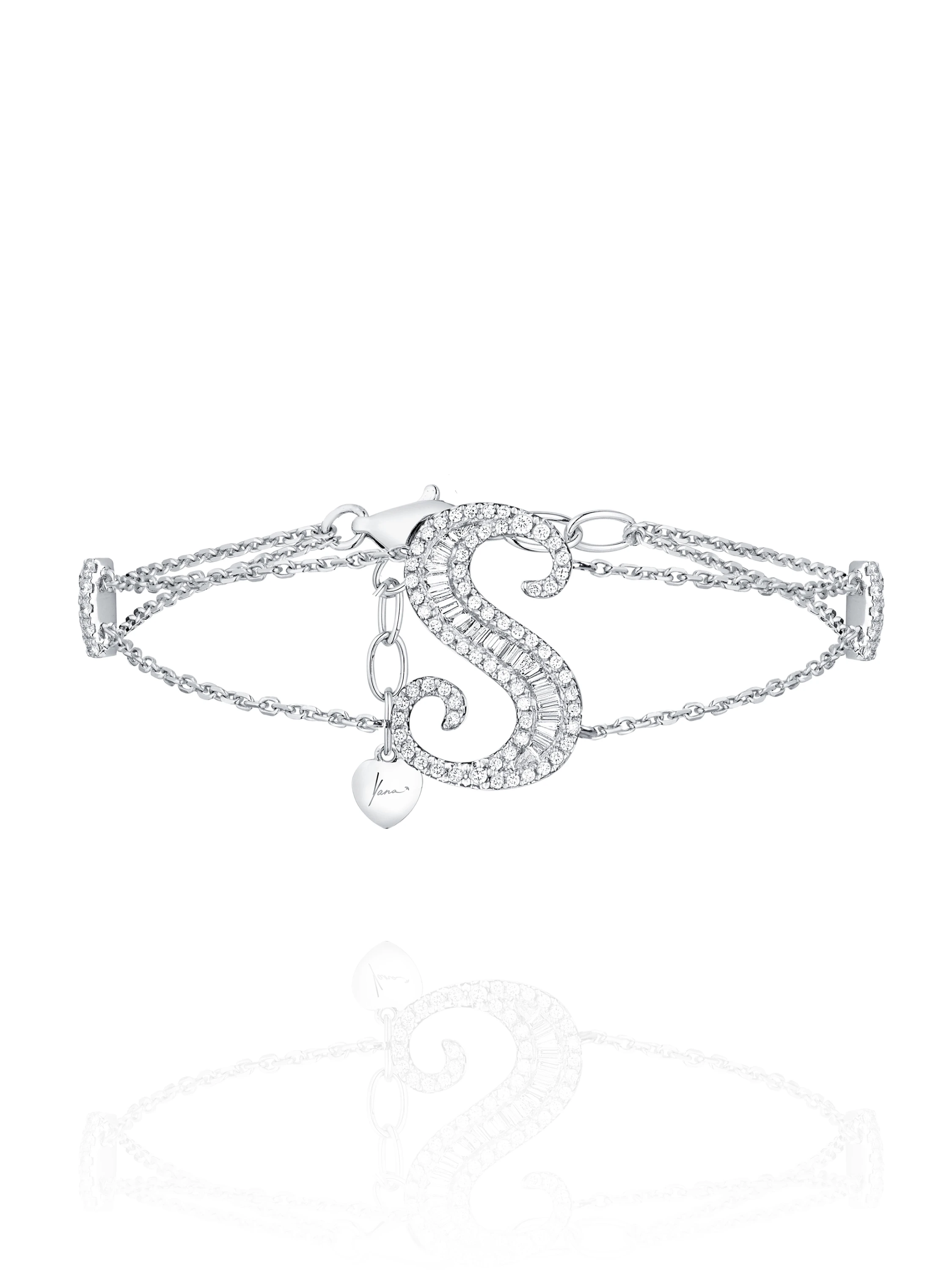 Baguette Diamond, Round Diamond & White Gold "S" Bracelet