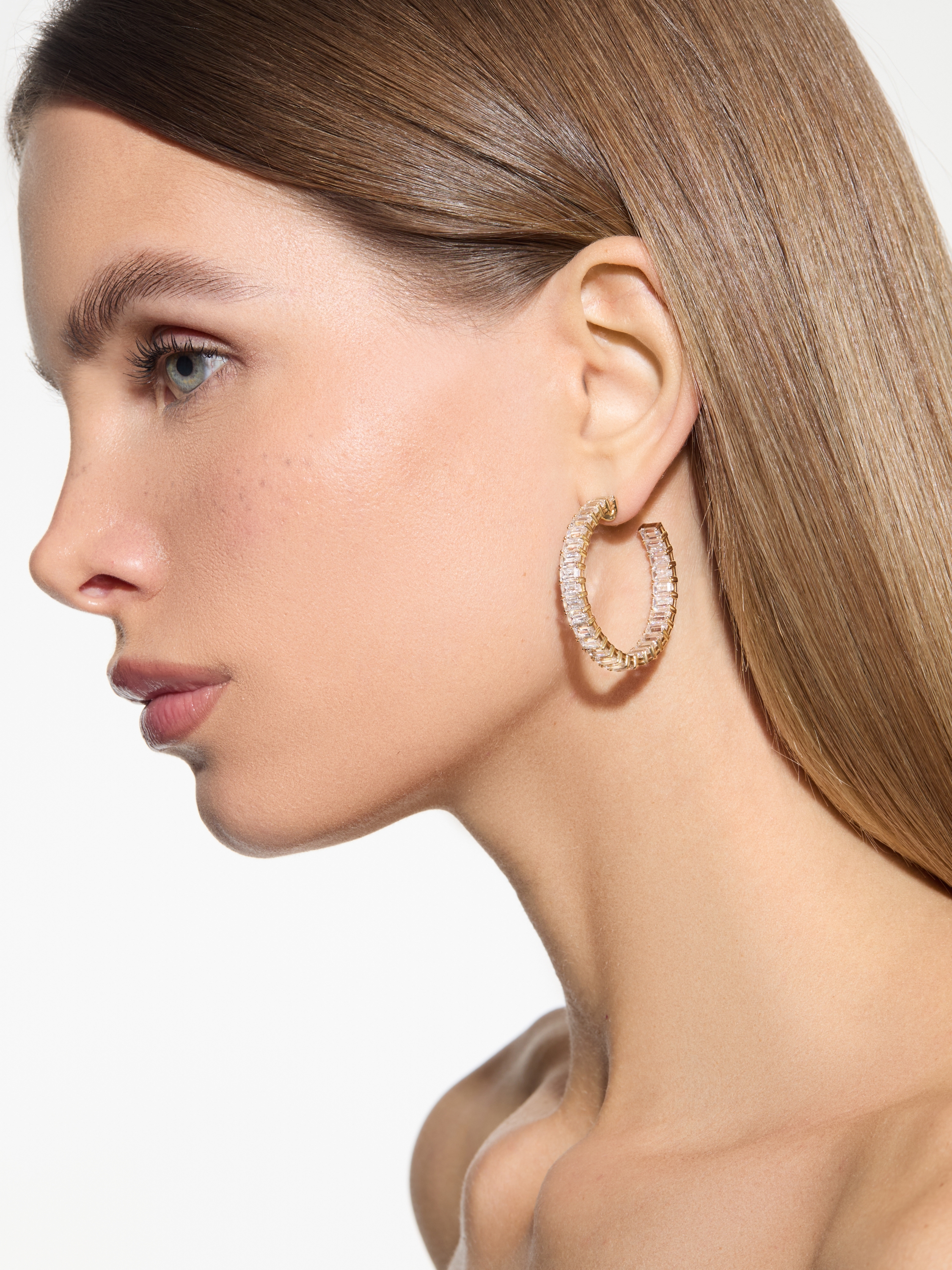 Yellow gold hoops with 58 baguette-cut quartzes, 31.45 ct. Diameter: 5 cm.