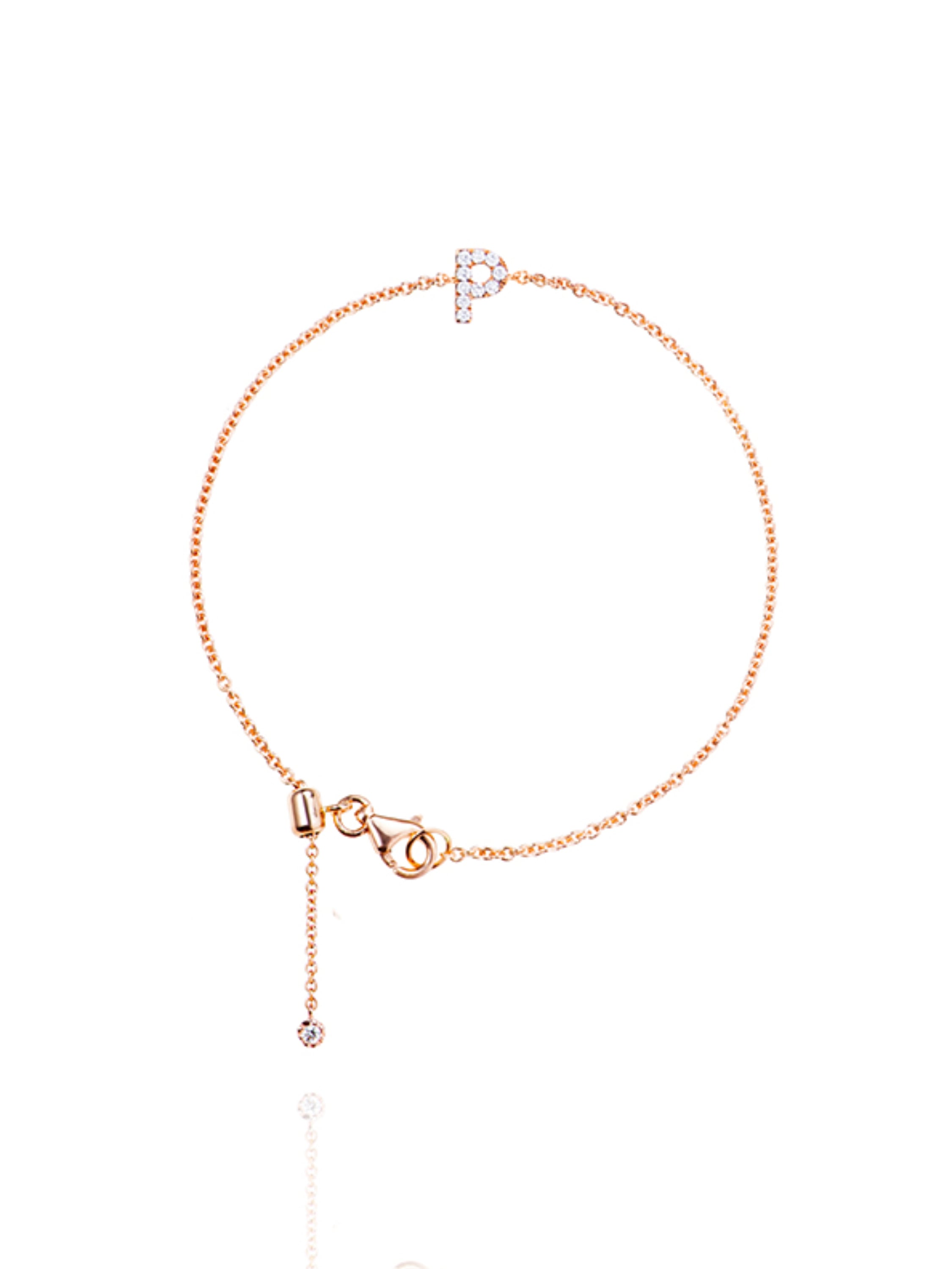 Yellow gold and diamond bracelet with the letter P