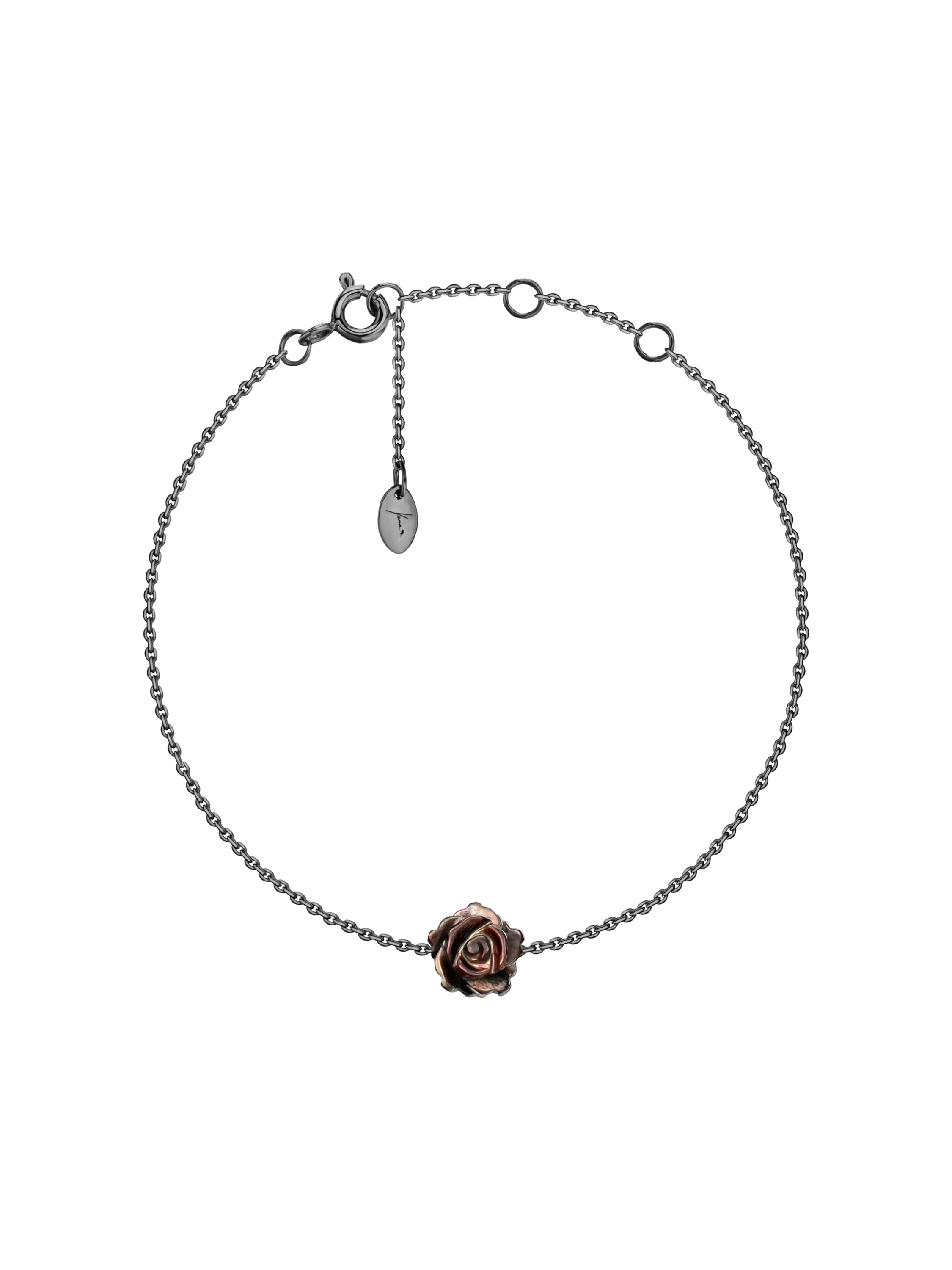 Bracelet made of oxidized gold with a rose of black carved mother-of-pearl