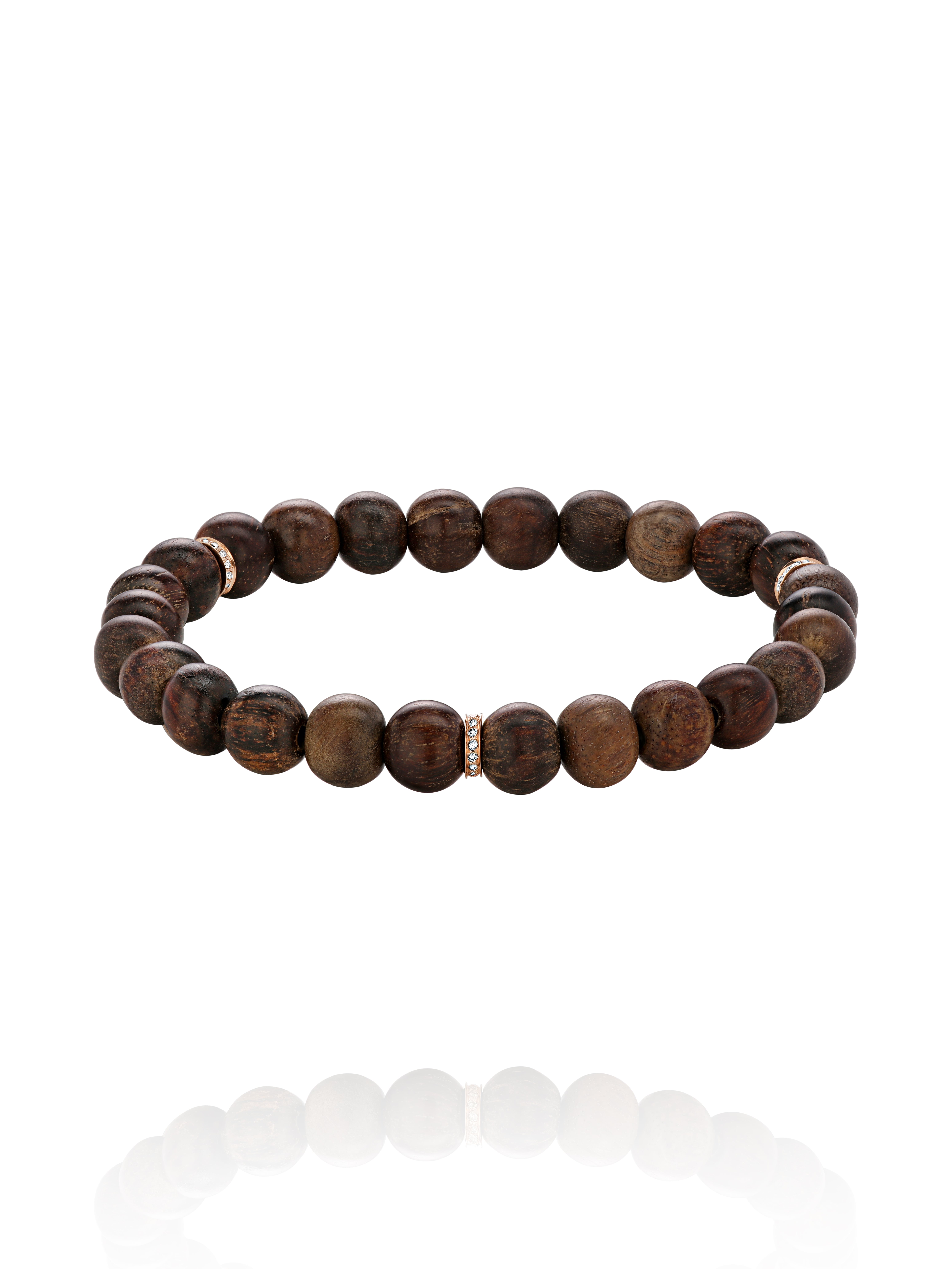Bead Agar Wood, Brown Round Diamond & Rose Gold Bracelet