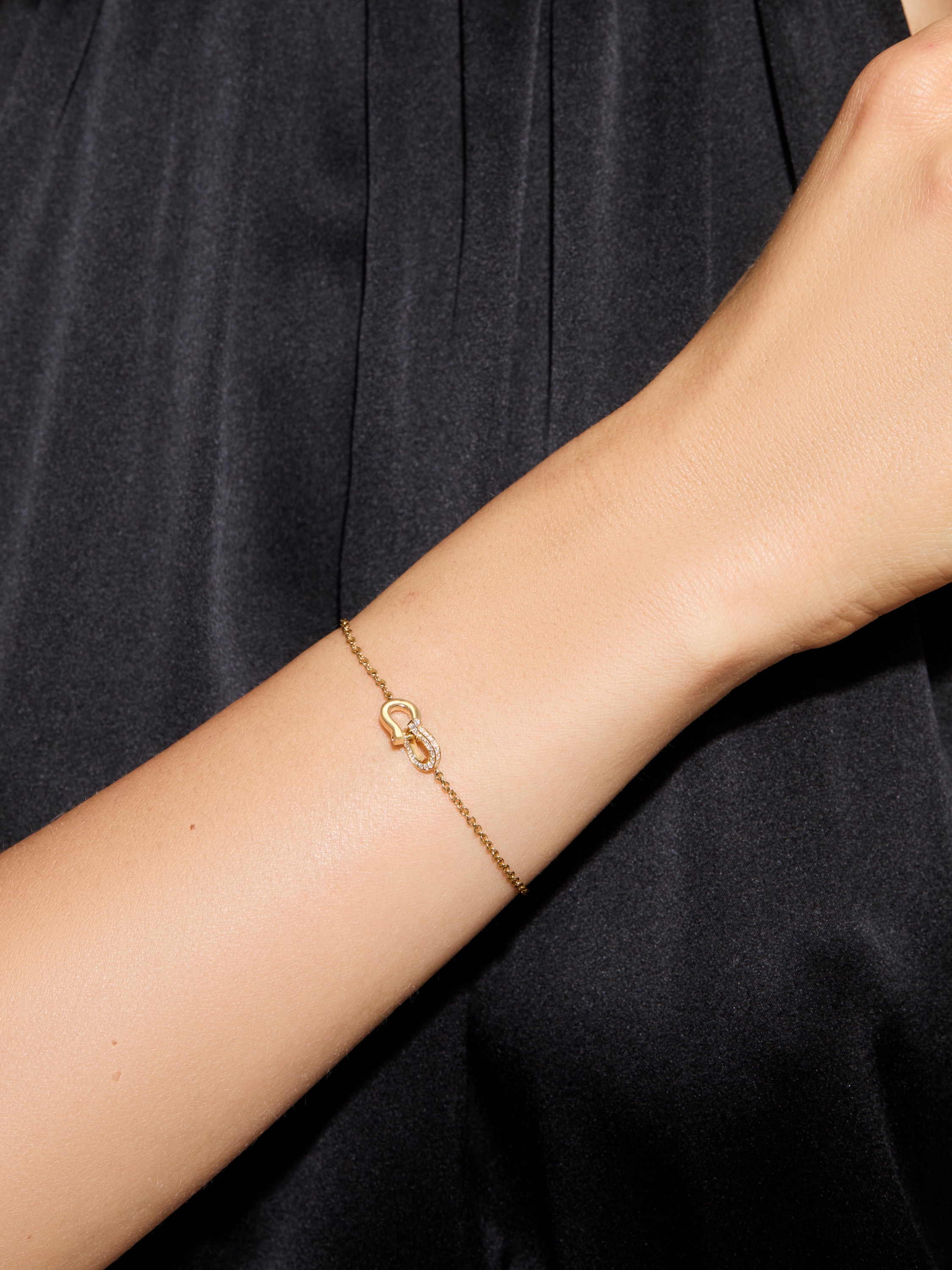 Bracelet with horseshoes in yellow gold with 46 round diamonds 0.18 ct.