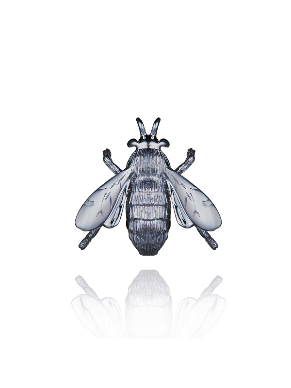 Fly-shaped brooch in blackened gold with 2 round brilliant-cut diamonds with a total weight of 0.01 ct.