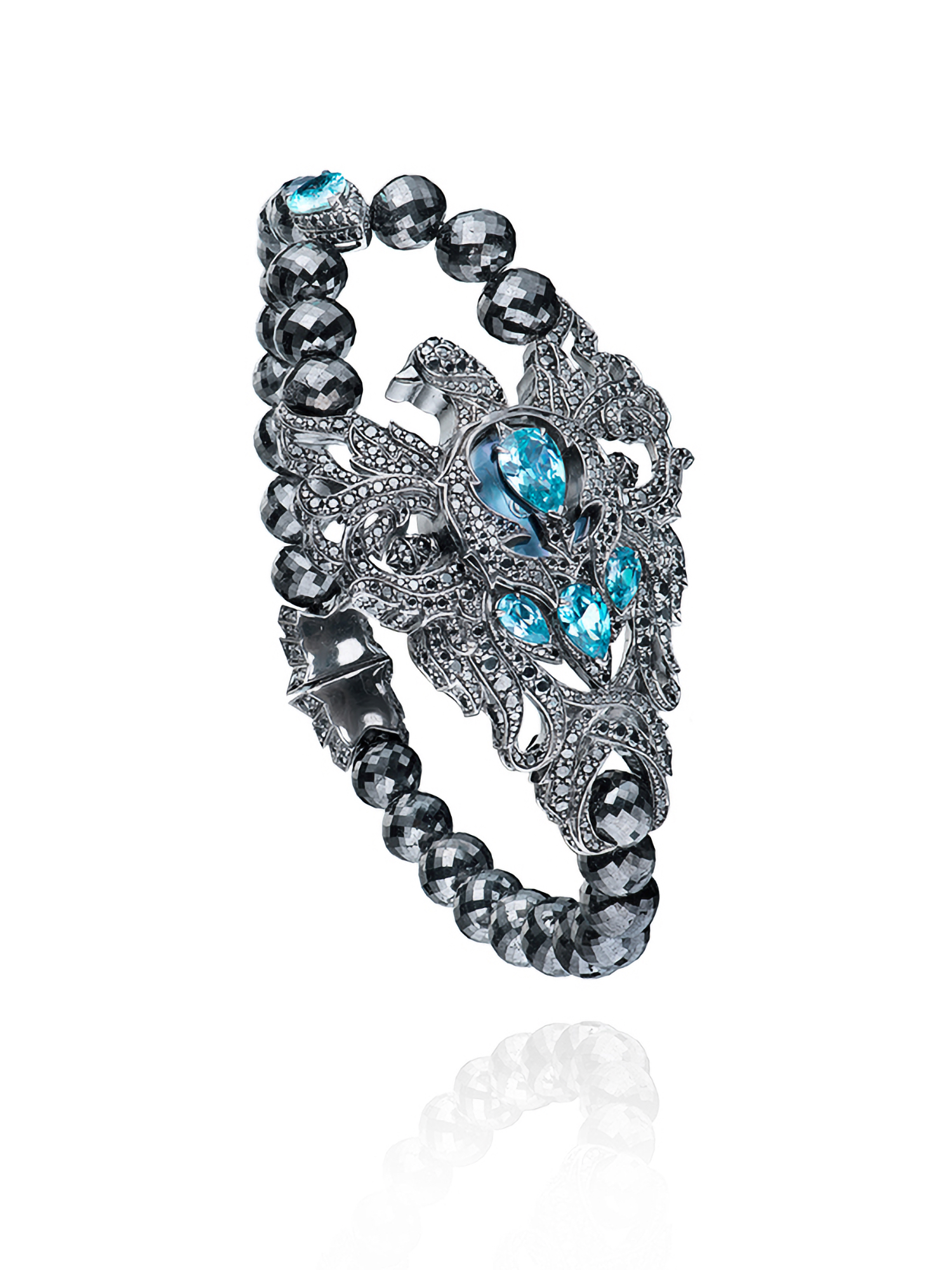 Blackened gold watch with black diamonds and zircons