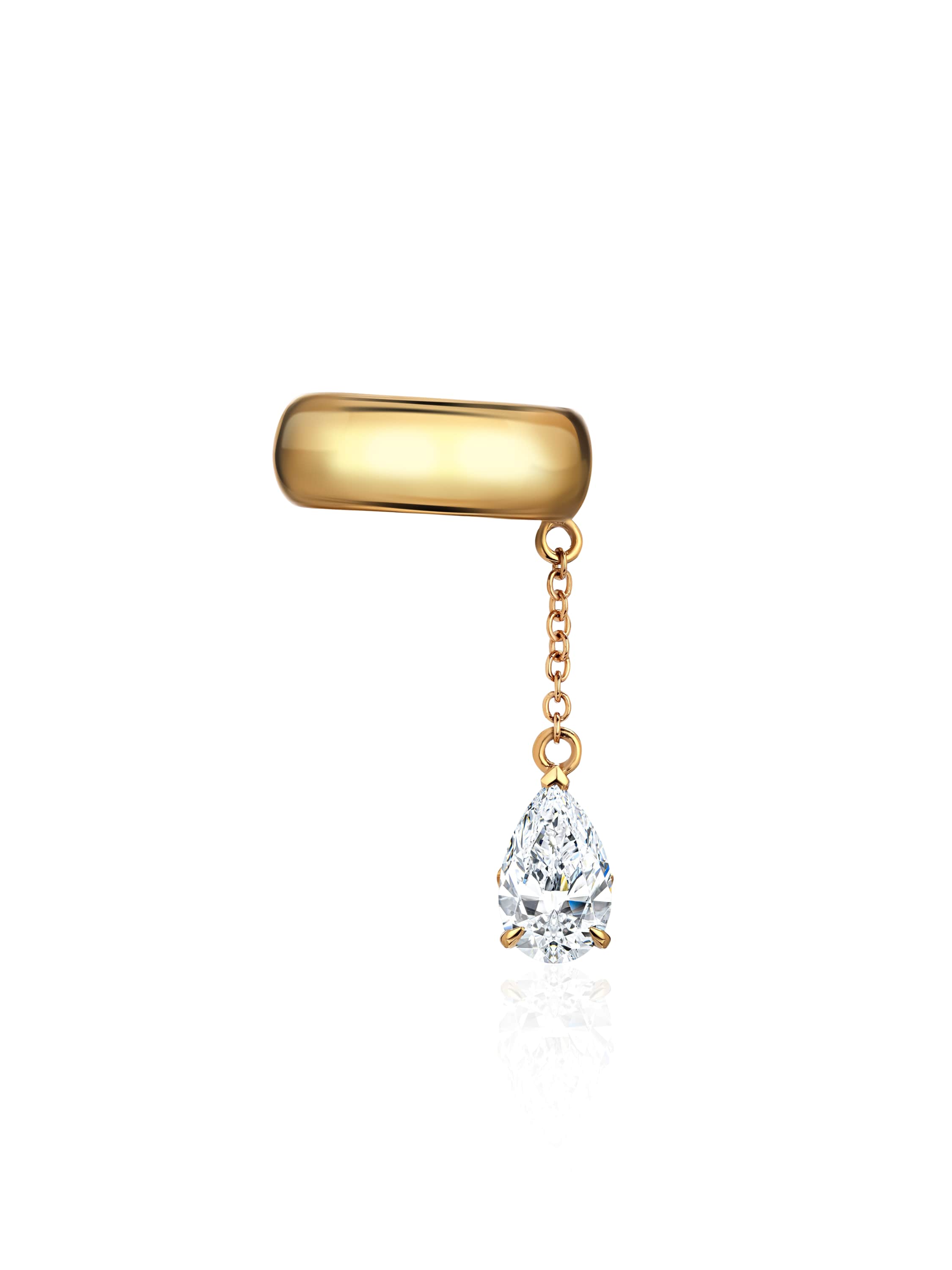 Yellow gold ear cuff with pear-cut cubic zirconia
