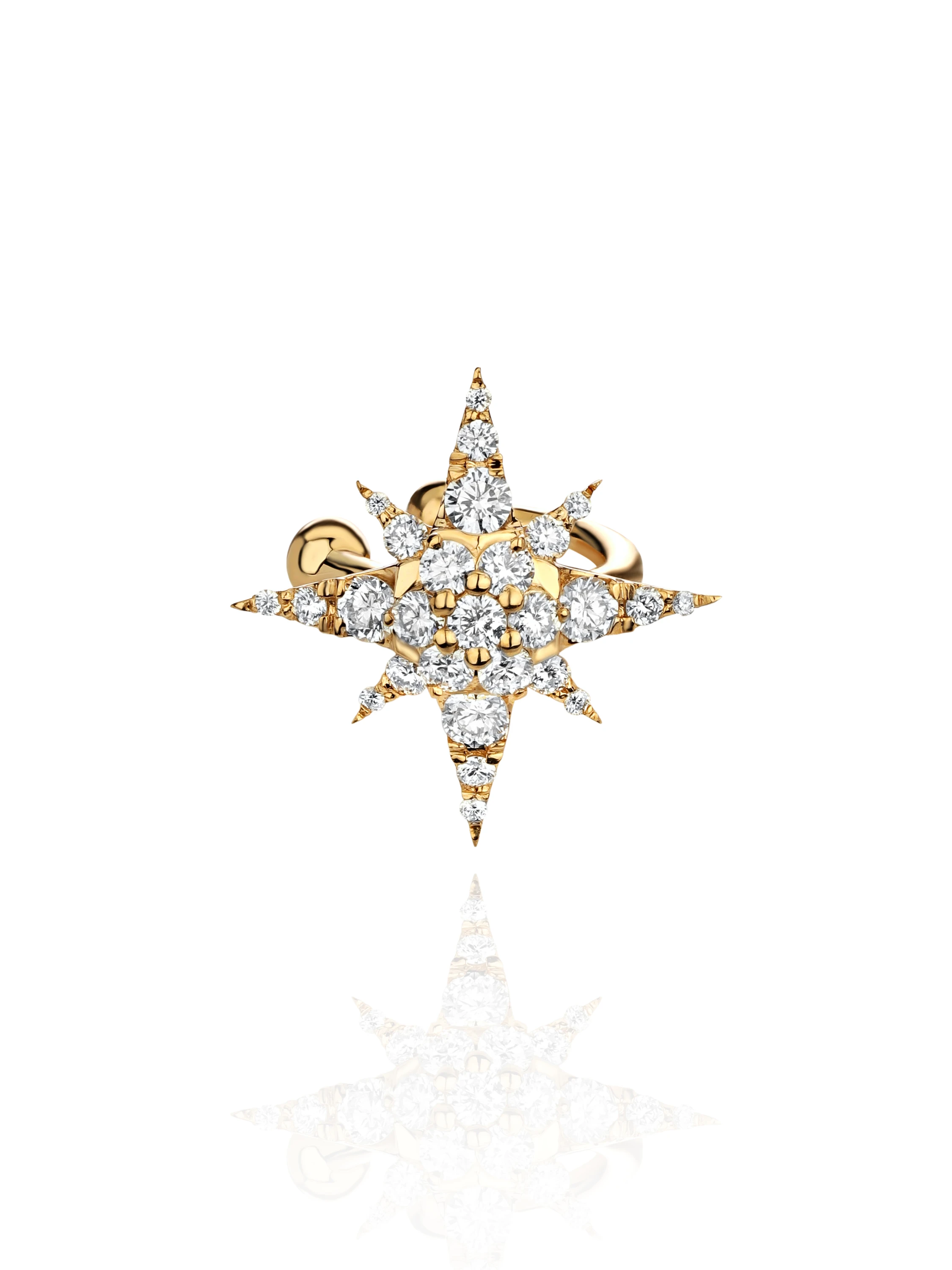 A star-shaped ear cuff in yellow gold with 27 round-cut diamonds with a total weight of 0.43 ct.