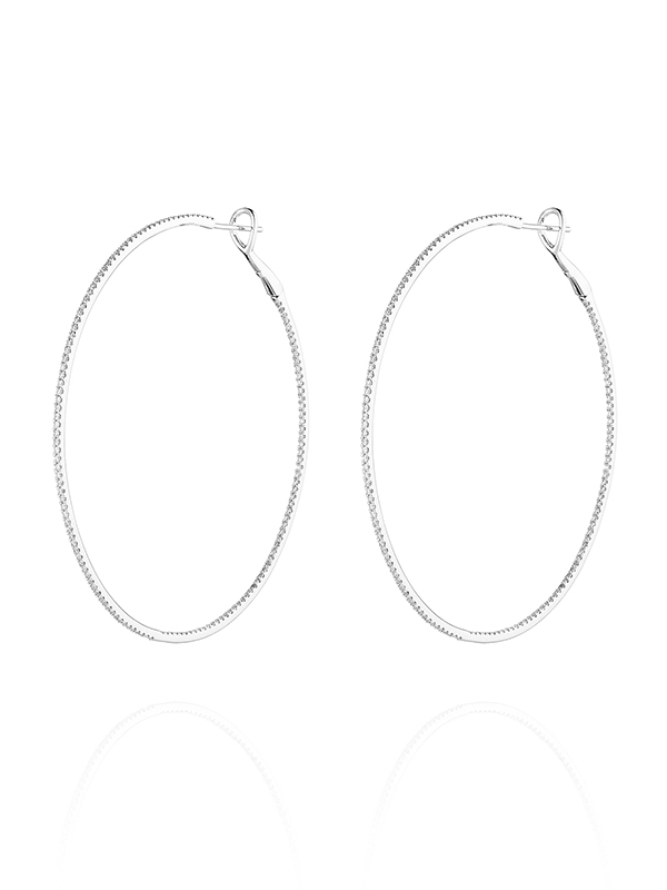 Hoop earrings in 18K white gold, set with 288 round diamonds with a total weight of 1.44 ct. Diameter: 6 cm.