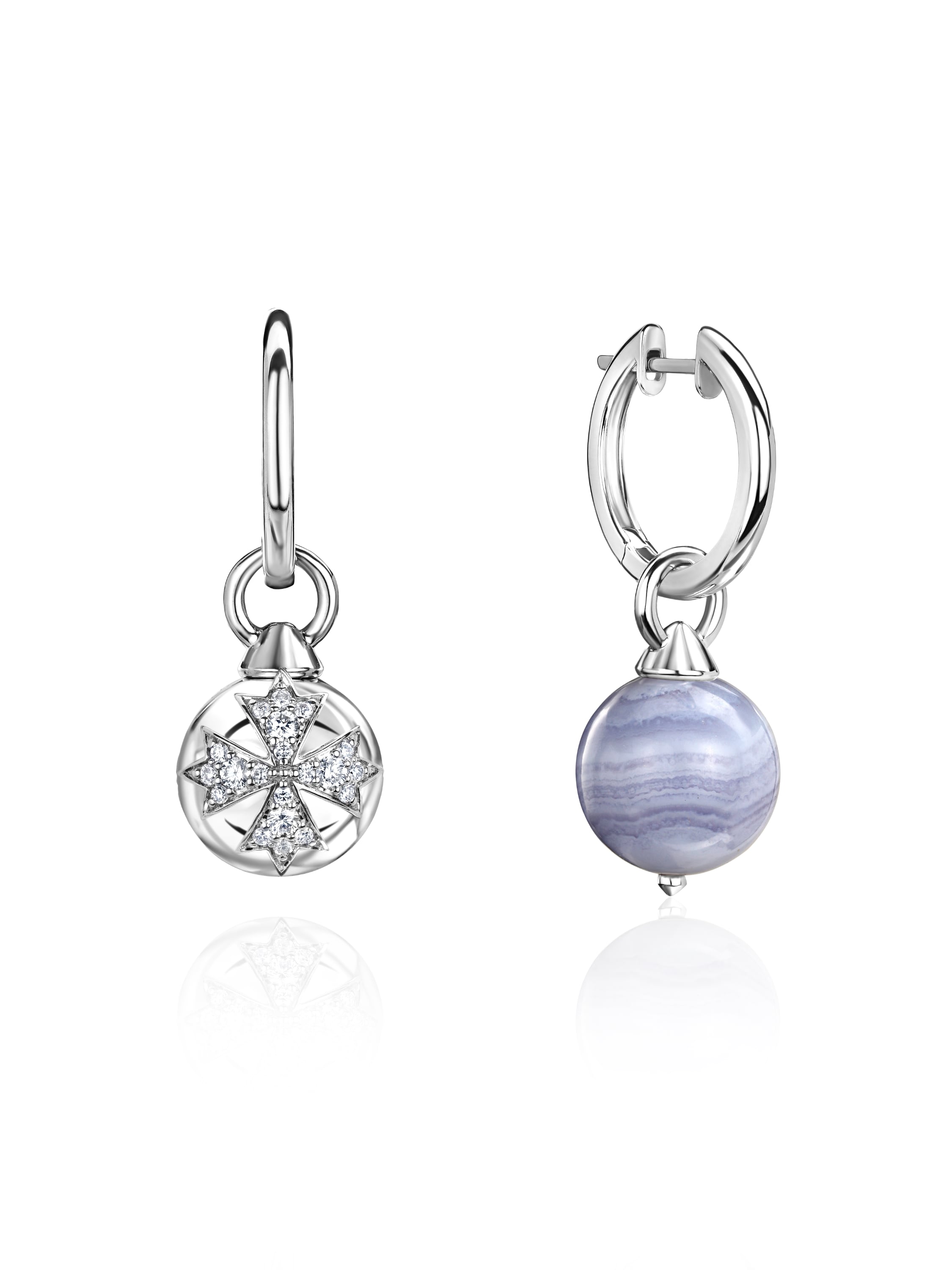 White gold hoops with chalcedony bead and diamonds