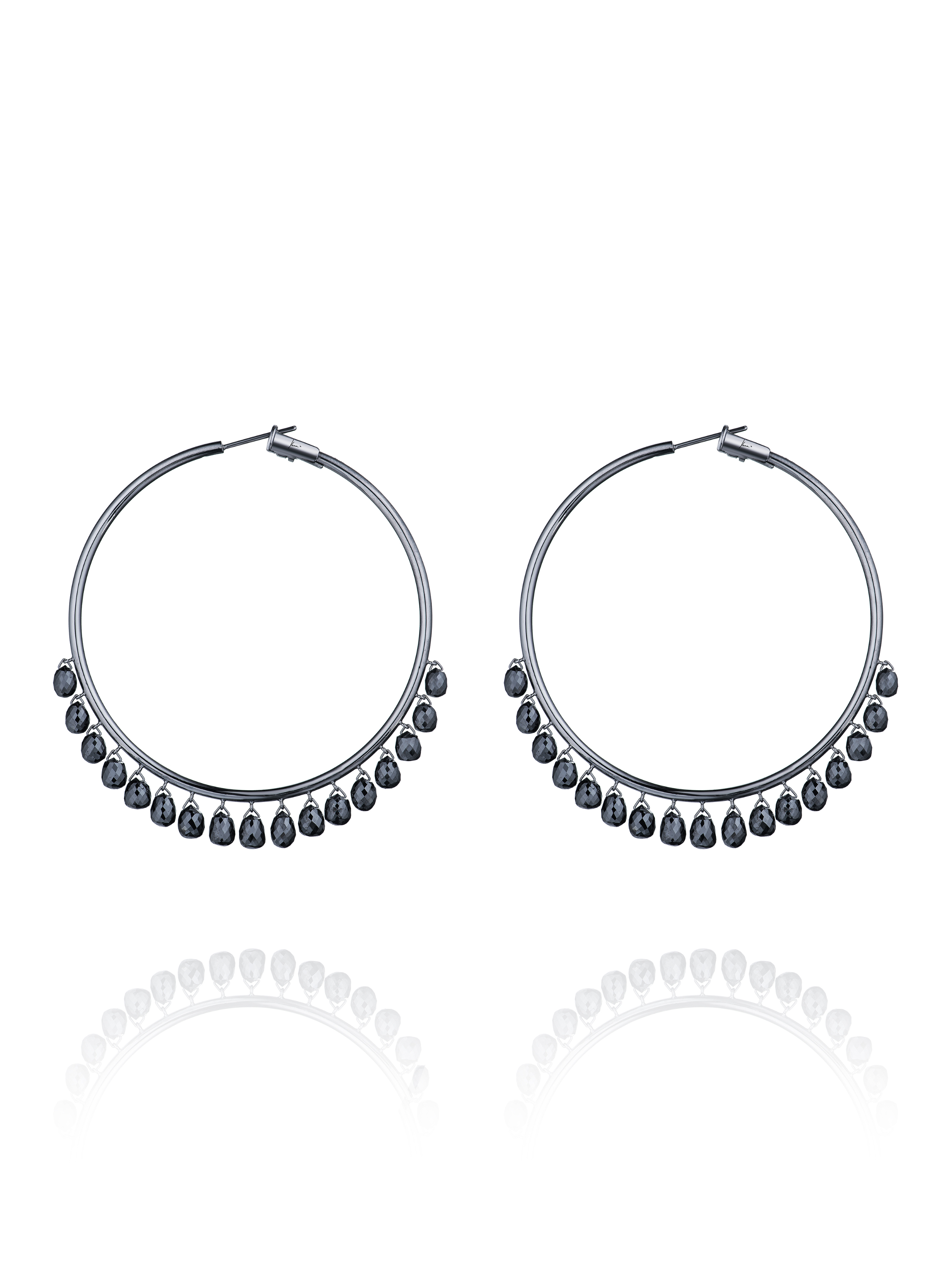 Hoop earrings in blackened gold with briolette-cut black diamonds