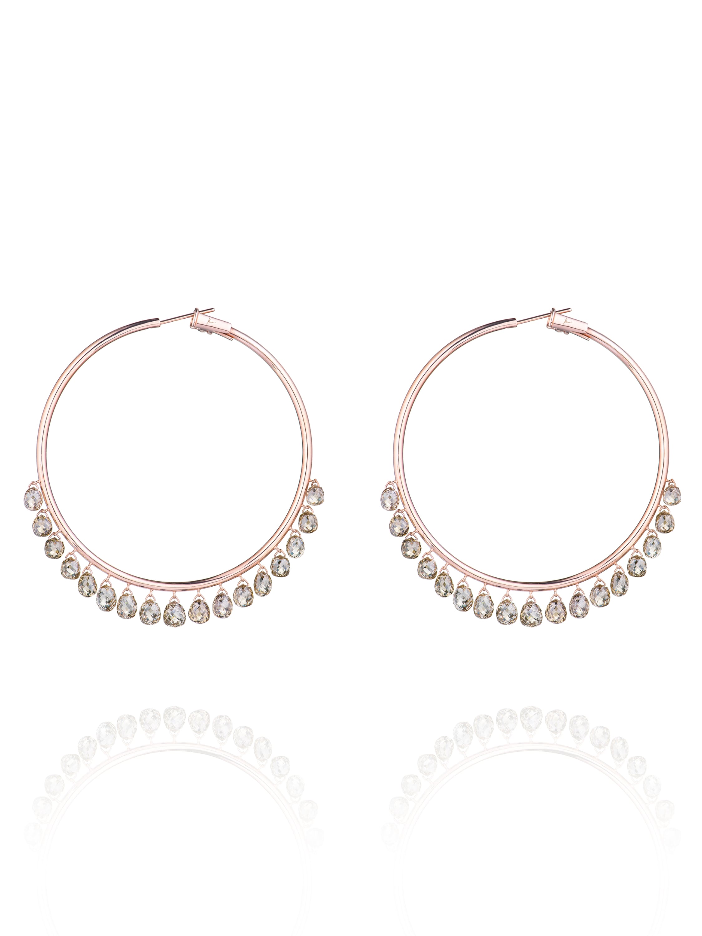 Hoops made of 18k rose gold, set with 34 brown briolette-cut diamonds with a total weight of 23.30 ct. Diameter: 6 cm.