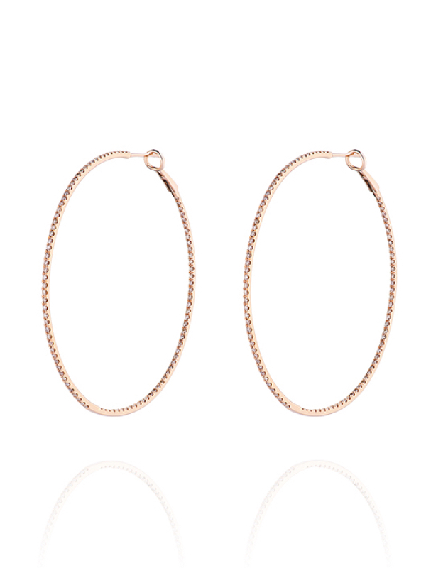 Hoop earrings in rose gold, set with 226 round brilliant-cut diamonds with a total weight of 1.08 ct. Diameter: 5 cm.