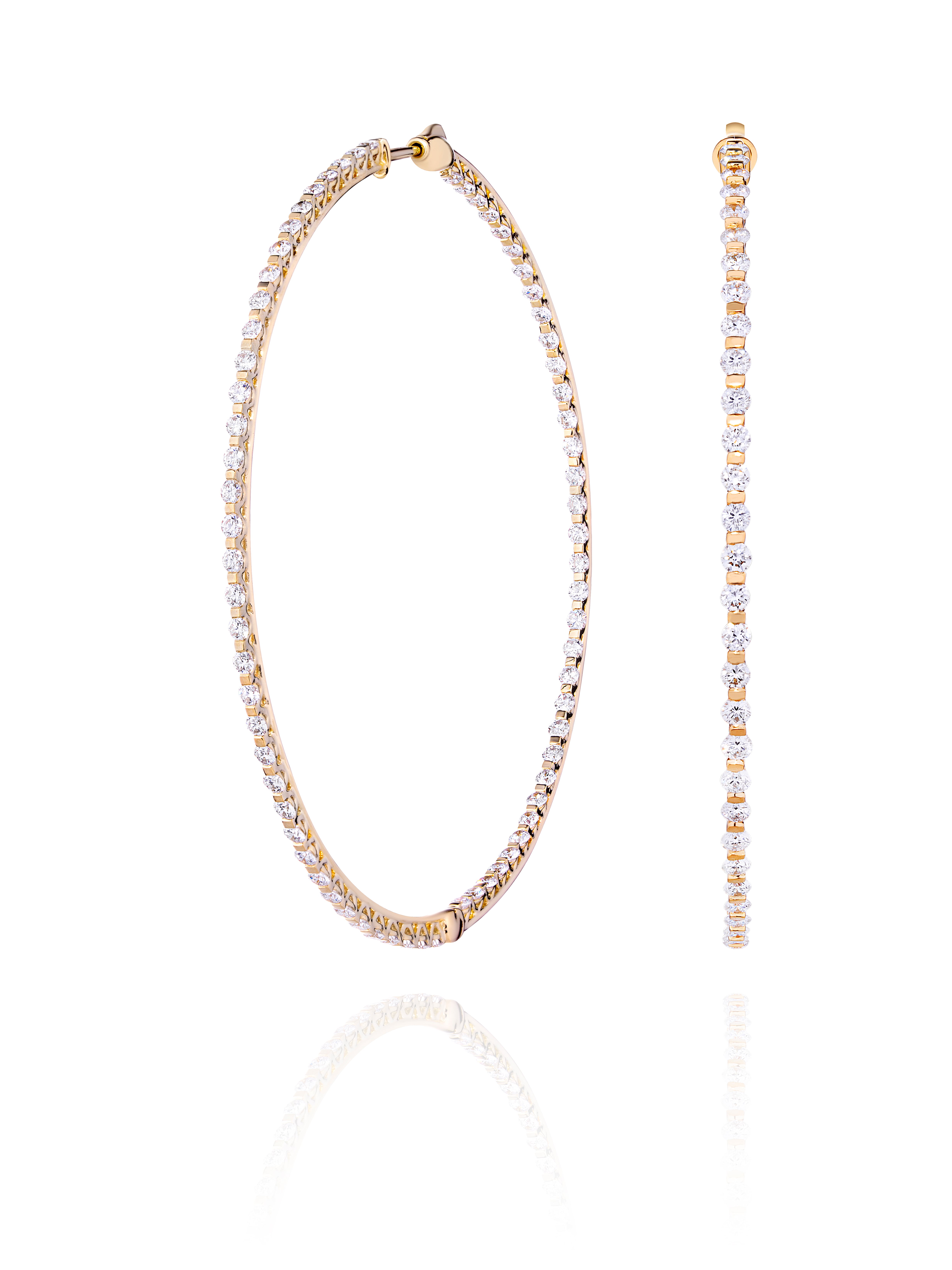 Hoop earrings in yellow gold, set with 142 round diamonds with a total weight of 3.56 ct. Diameter: 4 cm.