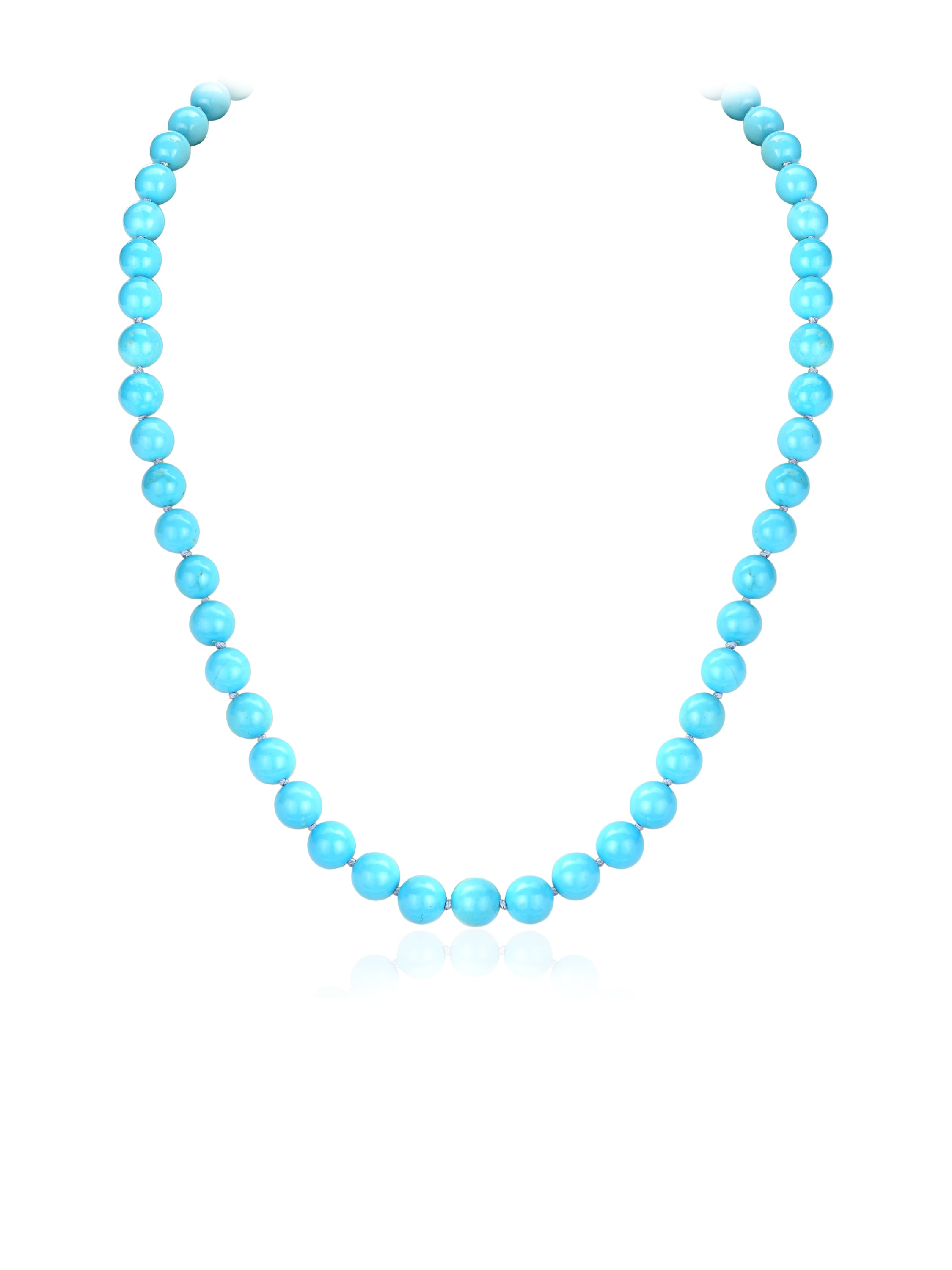 White gold necklace with 57 beads of Arizona turquoise 39.10 g, d 8.0–8.5, and 101 round-cut diamonds weighing 0.60 ct.