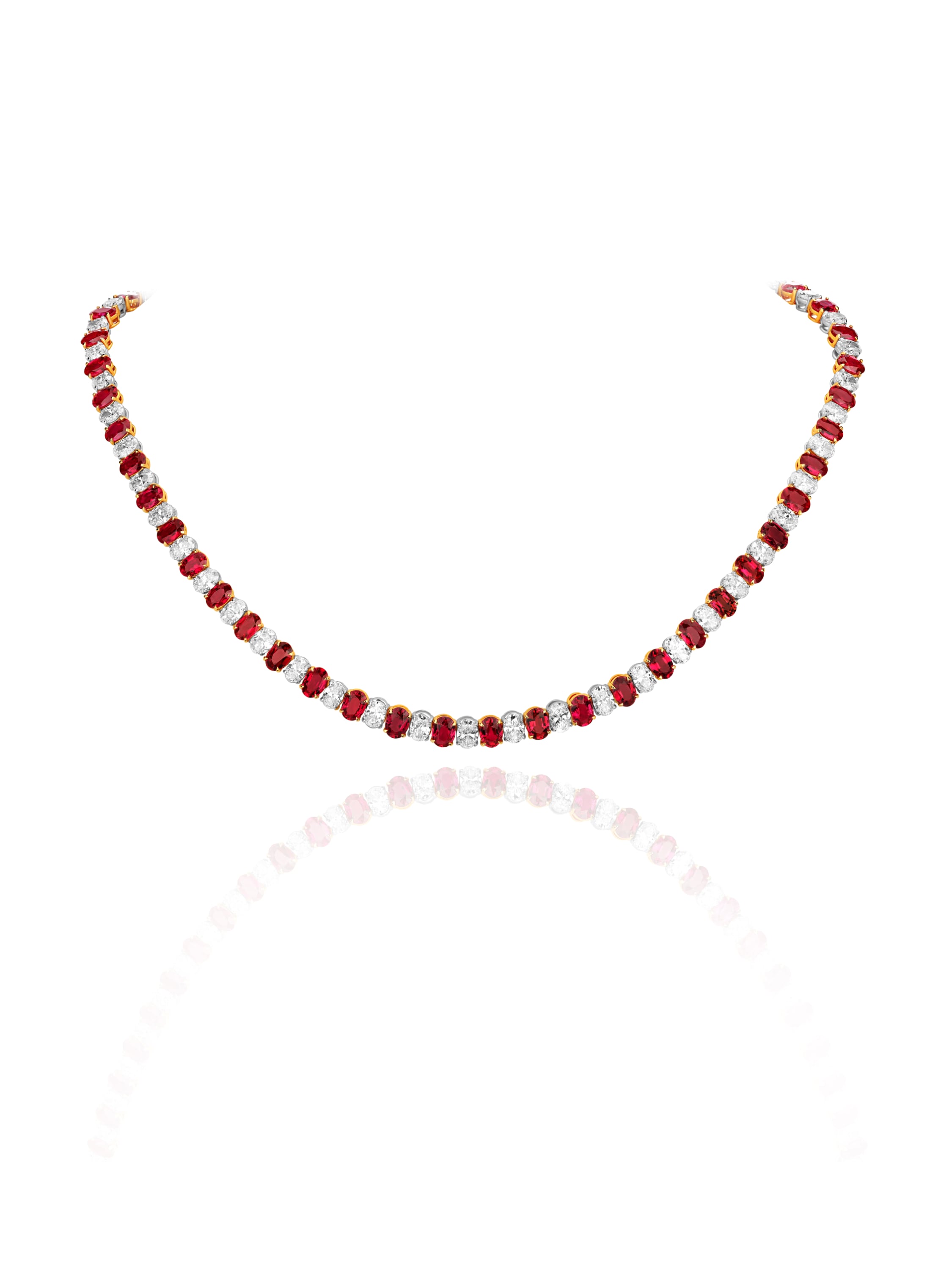 White gold necklace with 49 oval diamonds 15.00 ct D-F/VVS-VS and 48 oval-cut rubies weighing 22.70 ct.