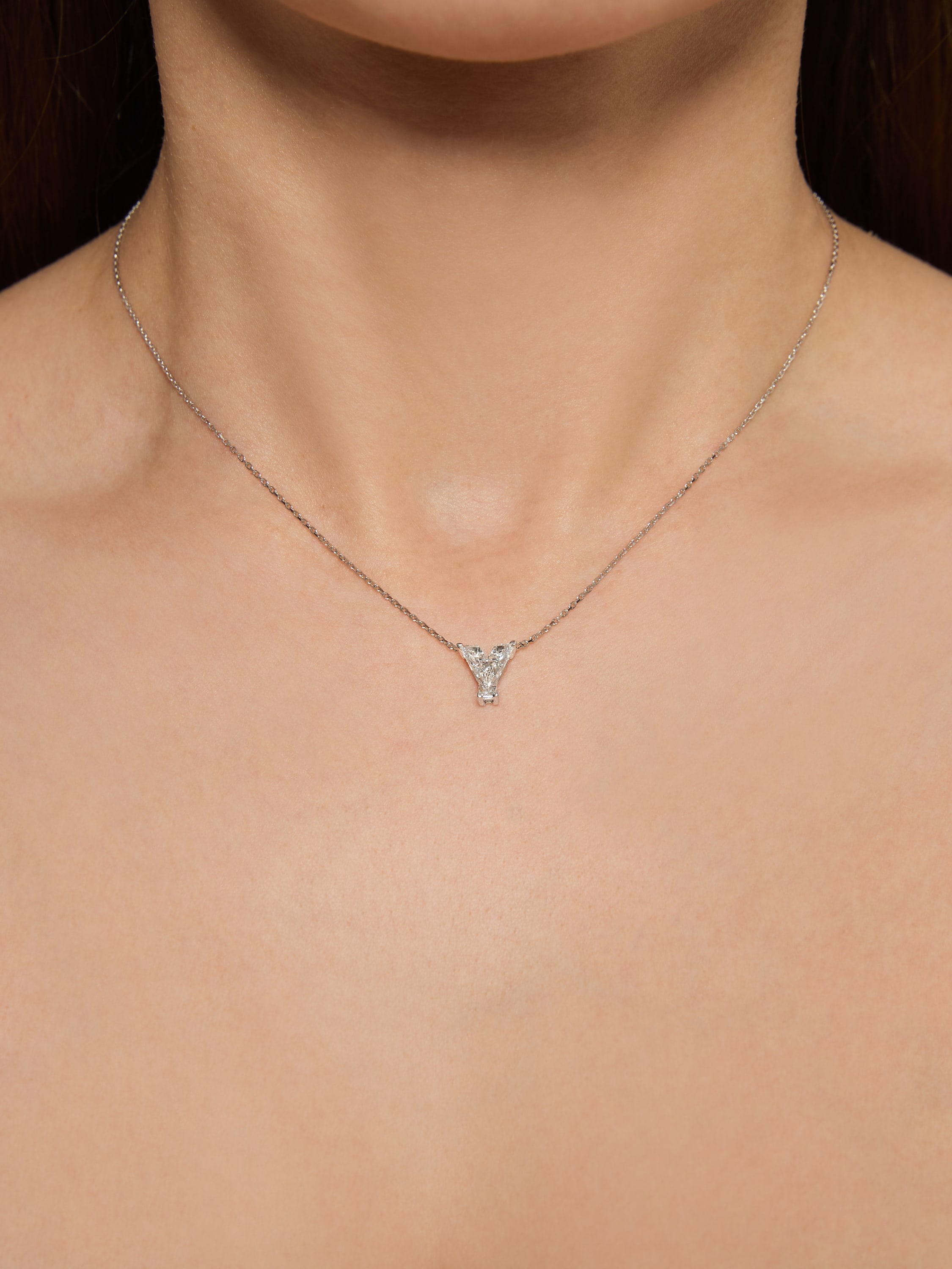 White gold necklace with a lab-grown fancy-cut diamond weighing 1.26 ct.