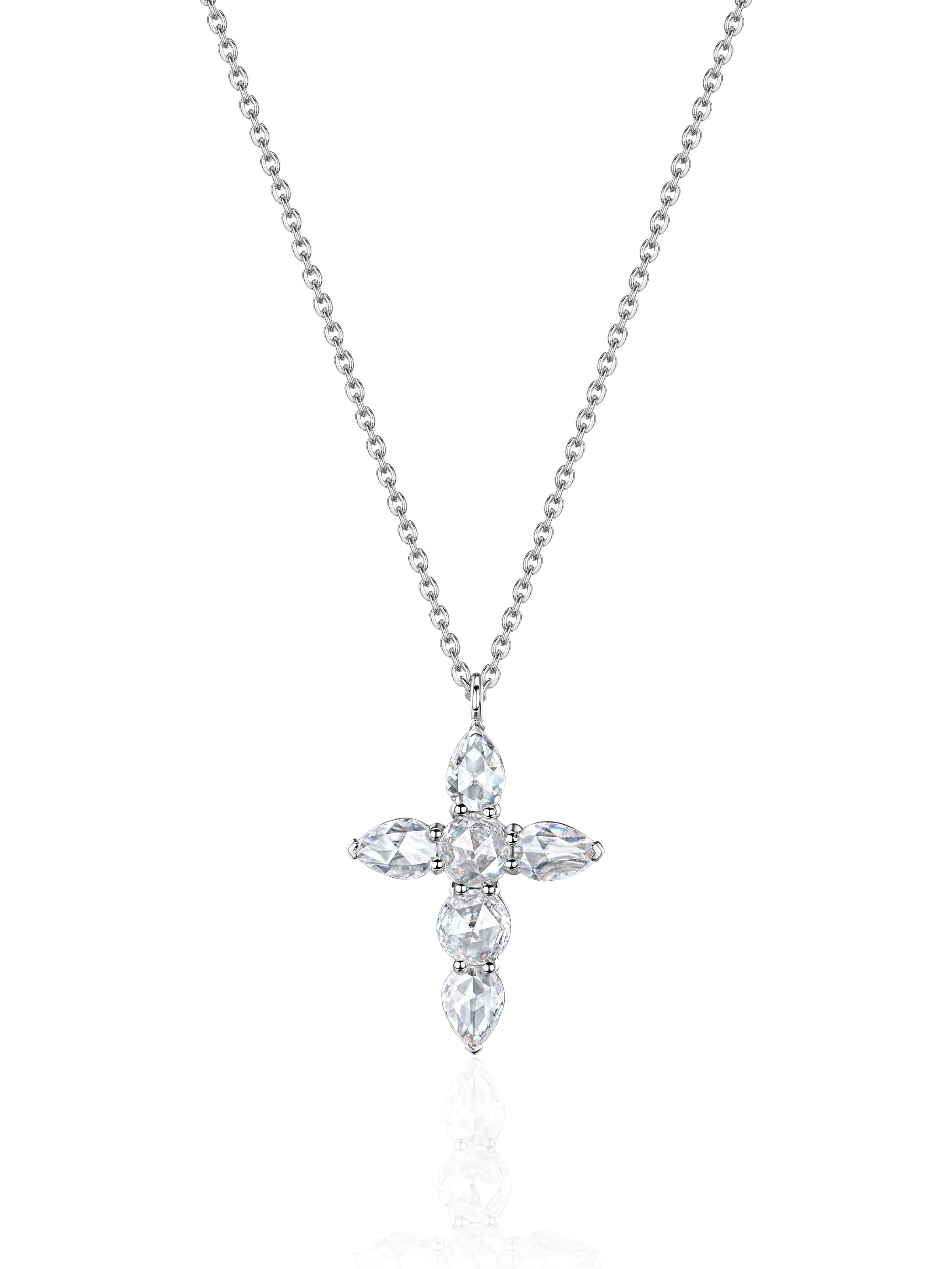 White gold necklace with cross-shaped pendant with Rose Cut diamonds