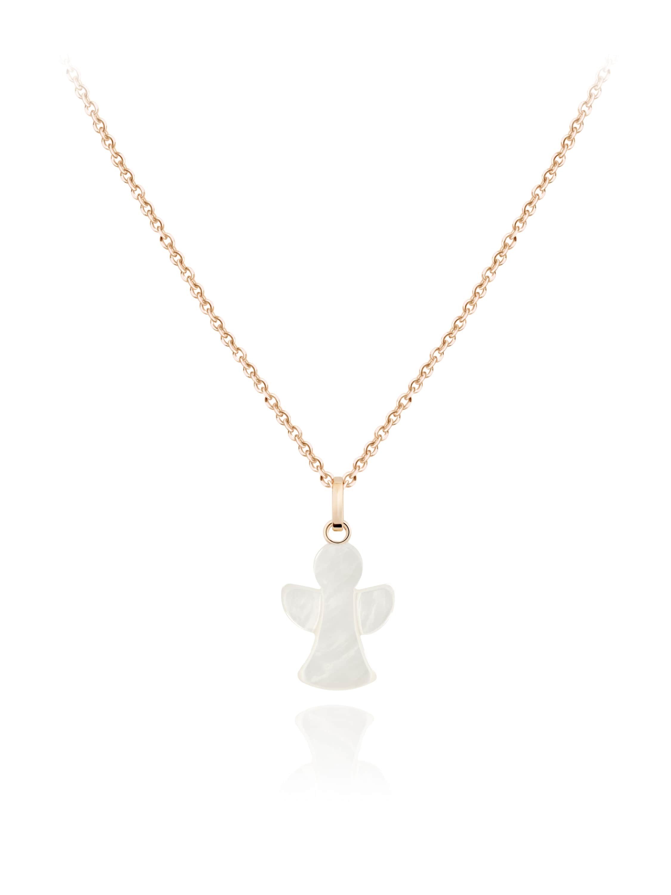 Rose gold necklace with a carved mother-of-pearl pendant weighing 0.38 g.