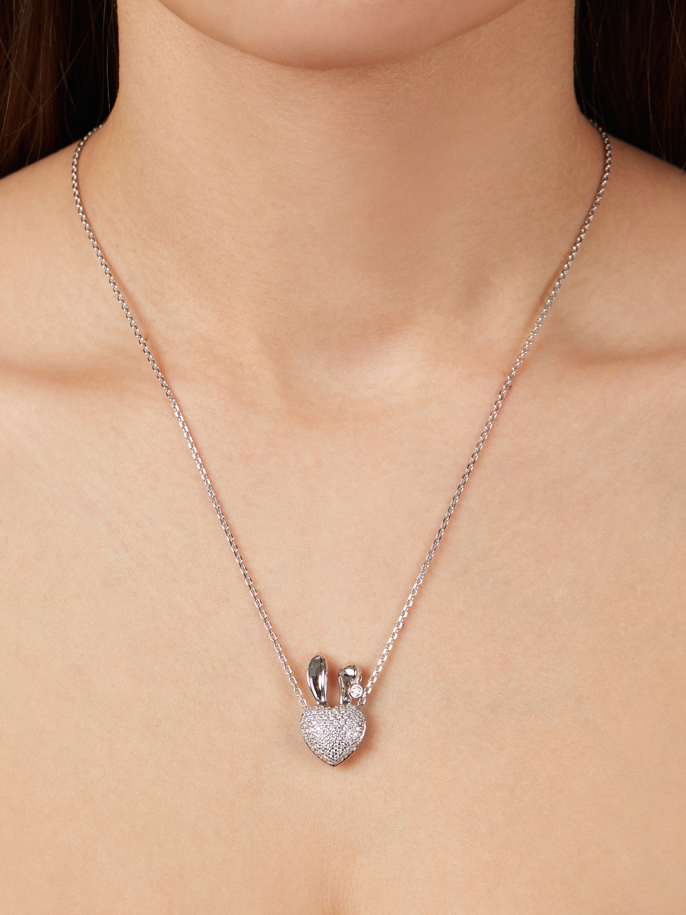 Necklace with a heart‑shaped pendant in 18K white gold and 95 round brilliant‑cut diamonds with a total weight of 0.62 ct.