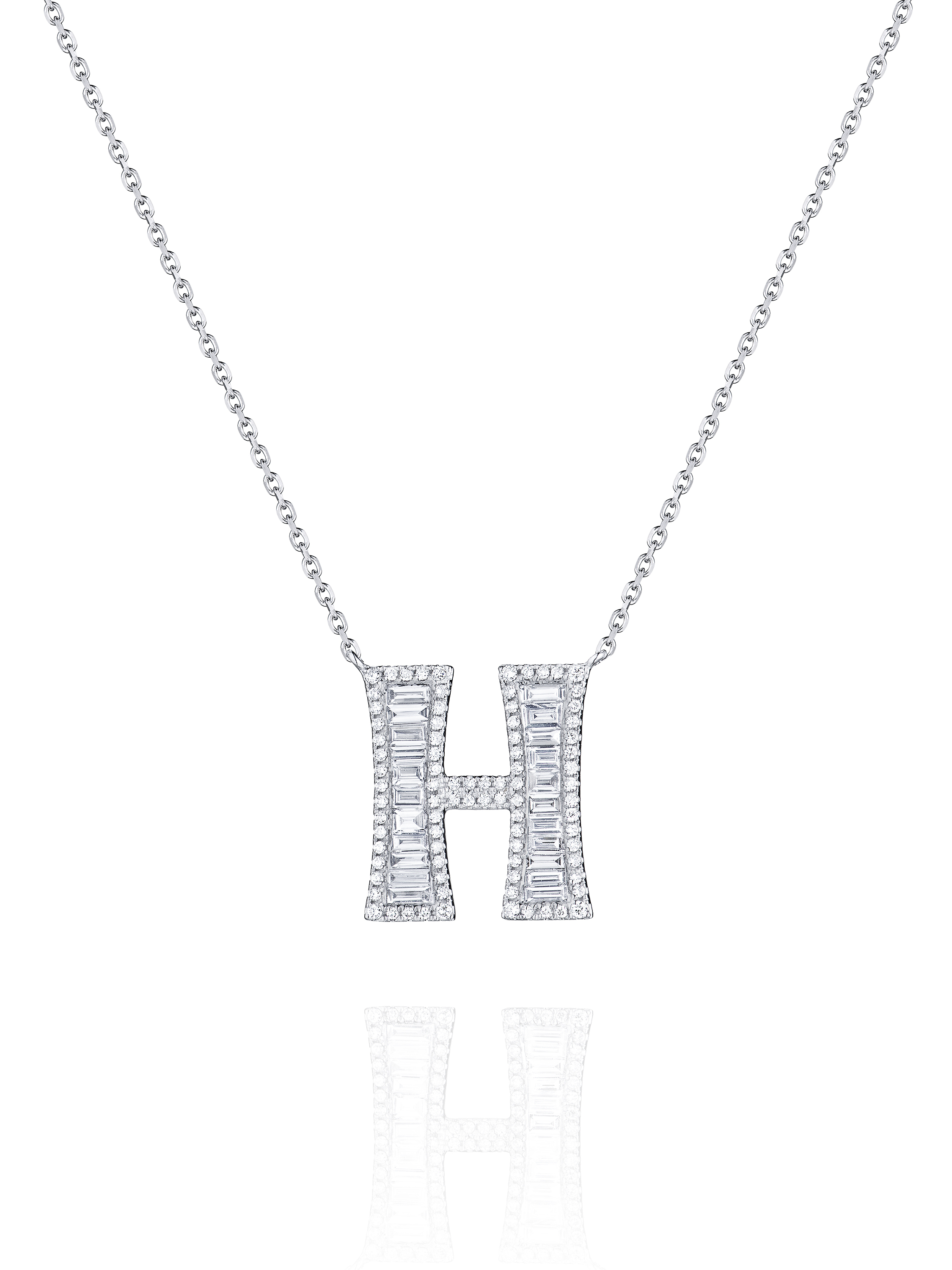 Necklace with an H‑shaped pendant in white gold and diamonds