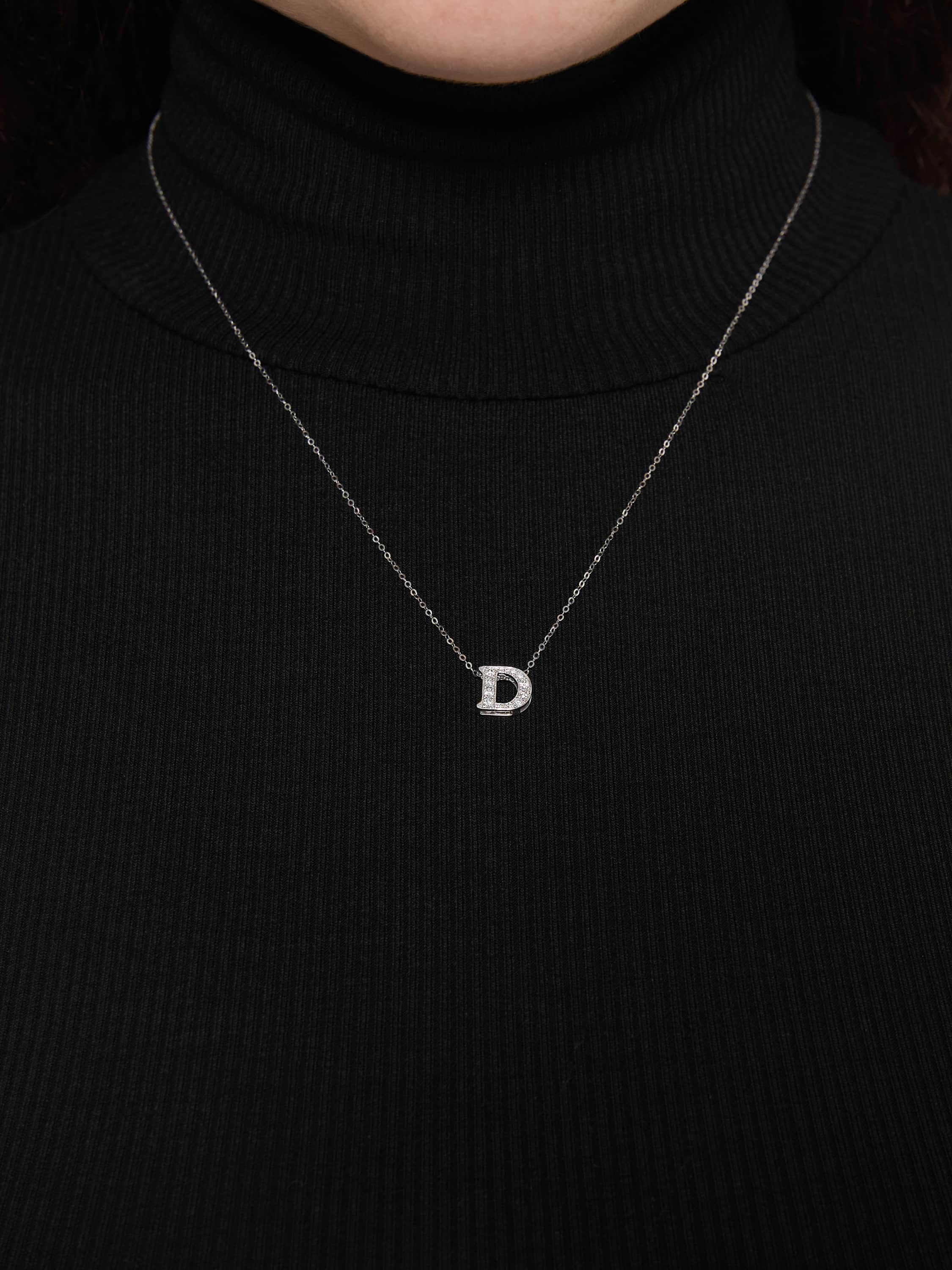 White gold necklace with a pendant in the shape of the letter D