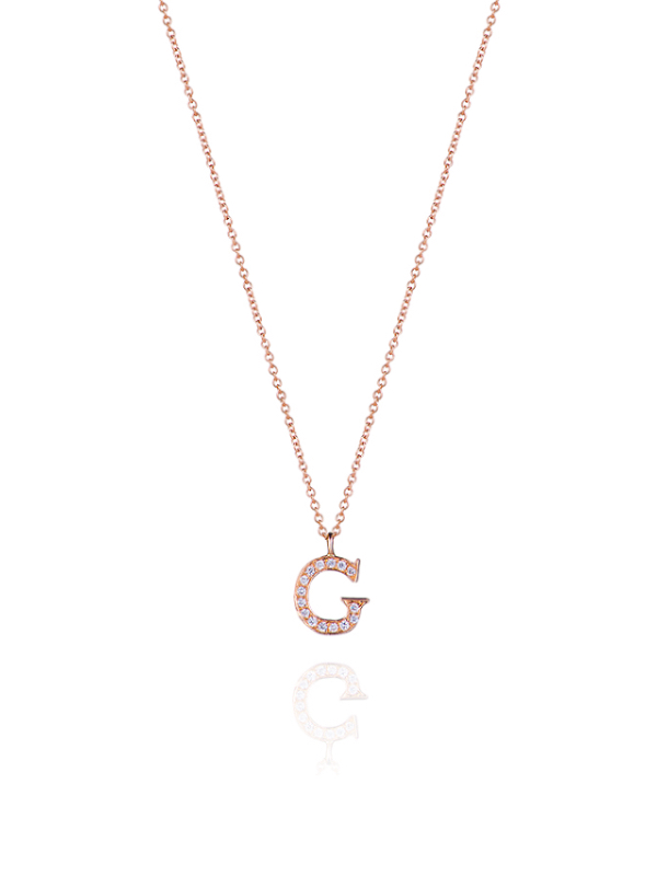 Necklace with a pendant made of rose gold and 15 round-cut diamonds with a total weight of 0.04 ct in the shape of the letter "G".