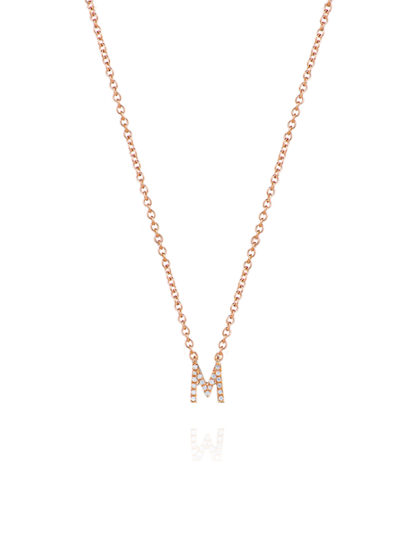 Necklace with a pendant in rose gold and 19 round brilliant-cut diamonds with a total weight of 0.05 ct in the shape of the letter "M".