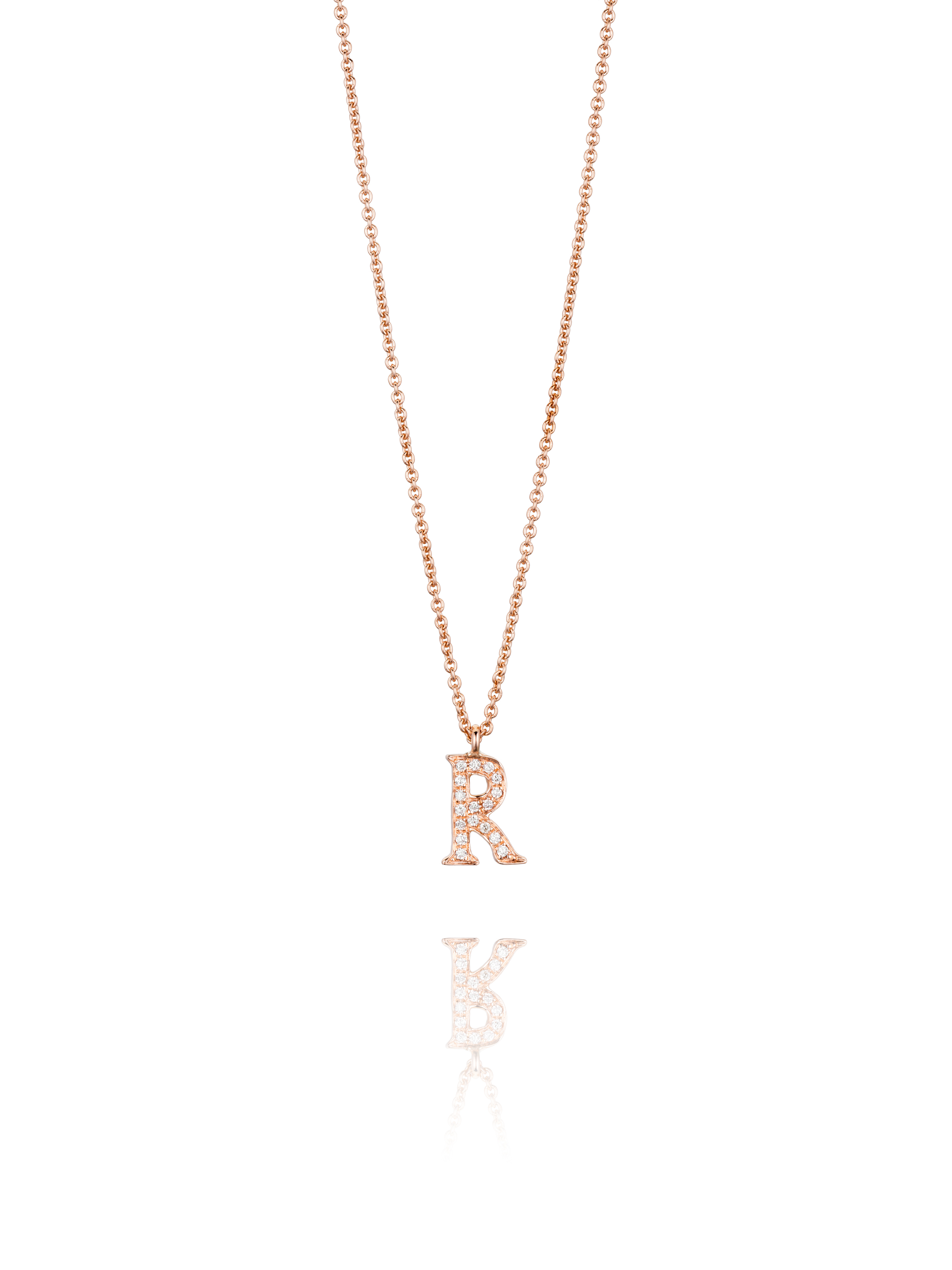 Necklace with a pendant made of rose gold and 17 round-cut diamonds with a total weight of 0.05 ct in the shape of the letter "R".