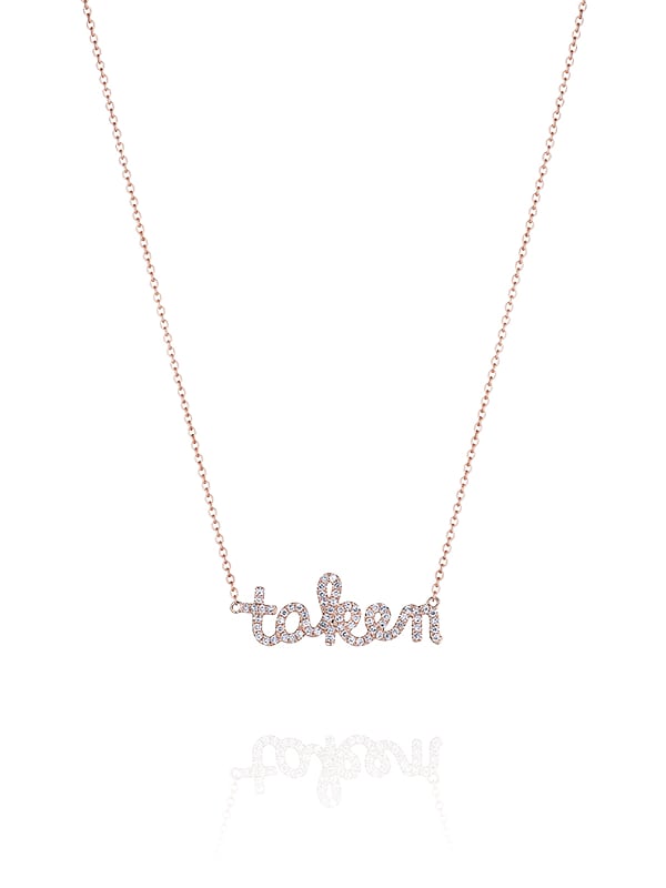 Necklace with a “taken” pendant in rose gold with 69 round brilliant‑cut diamonds with a total weight of 0.33 ct.
