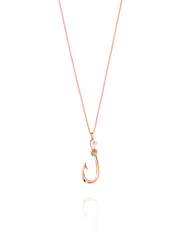 Necklace with a pendant in rose gold with a hook and a round diamond weighing 0.01 ct.