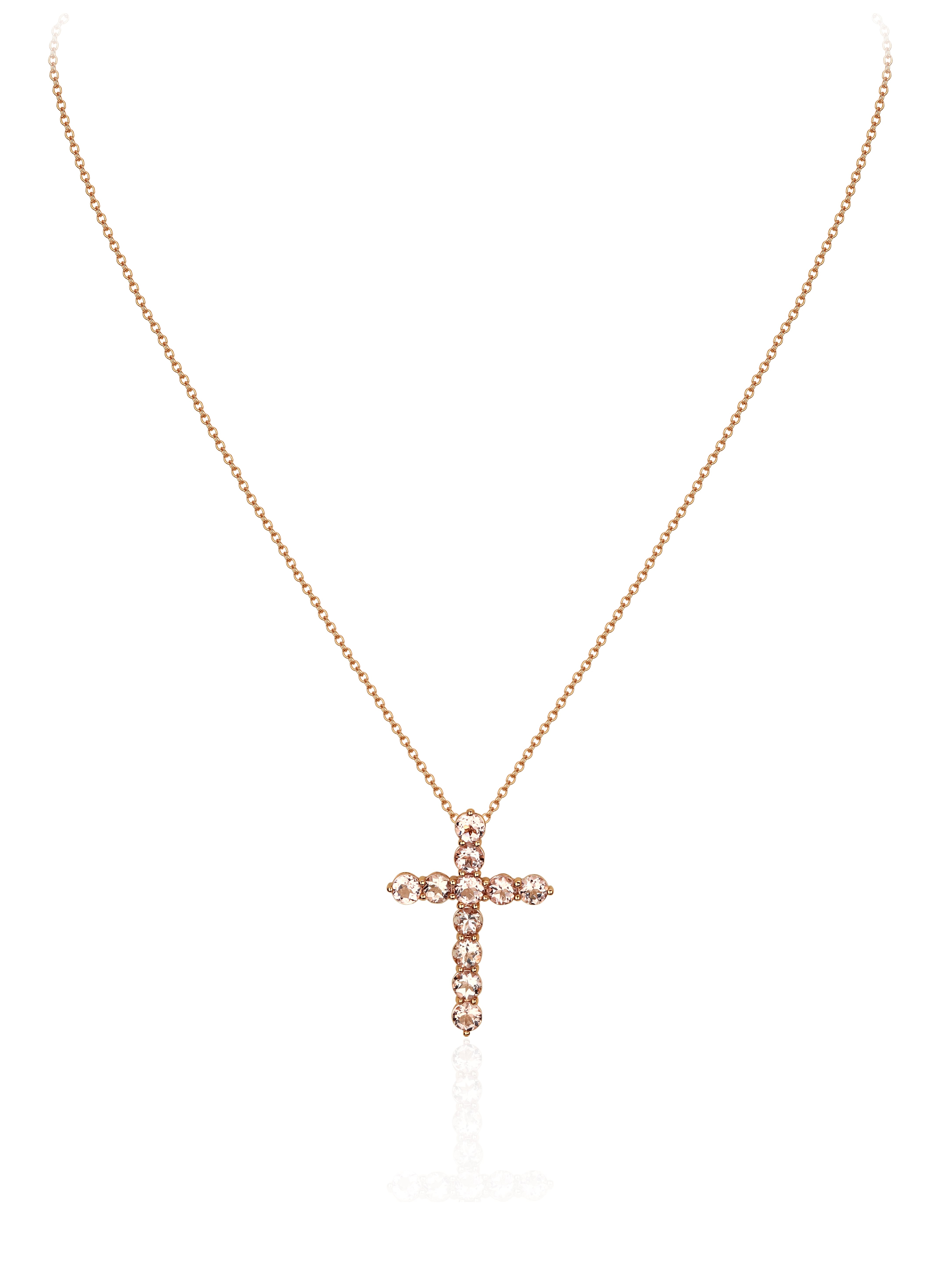 Necklace with a pendant in rose gold with 11 morganites with a total weight of 2.77 ct and 13 round-cut diamonds with a total weight of 0.06 ct.