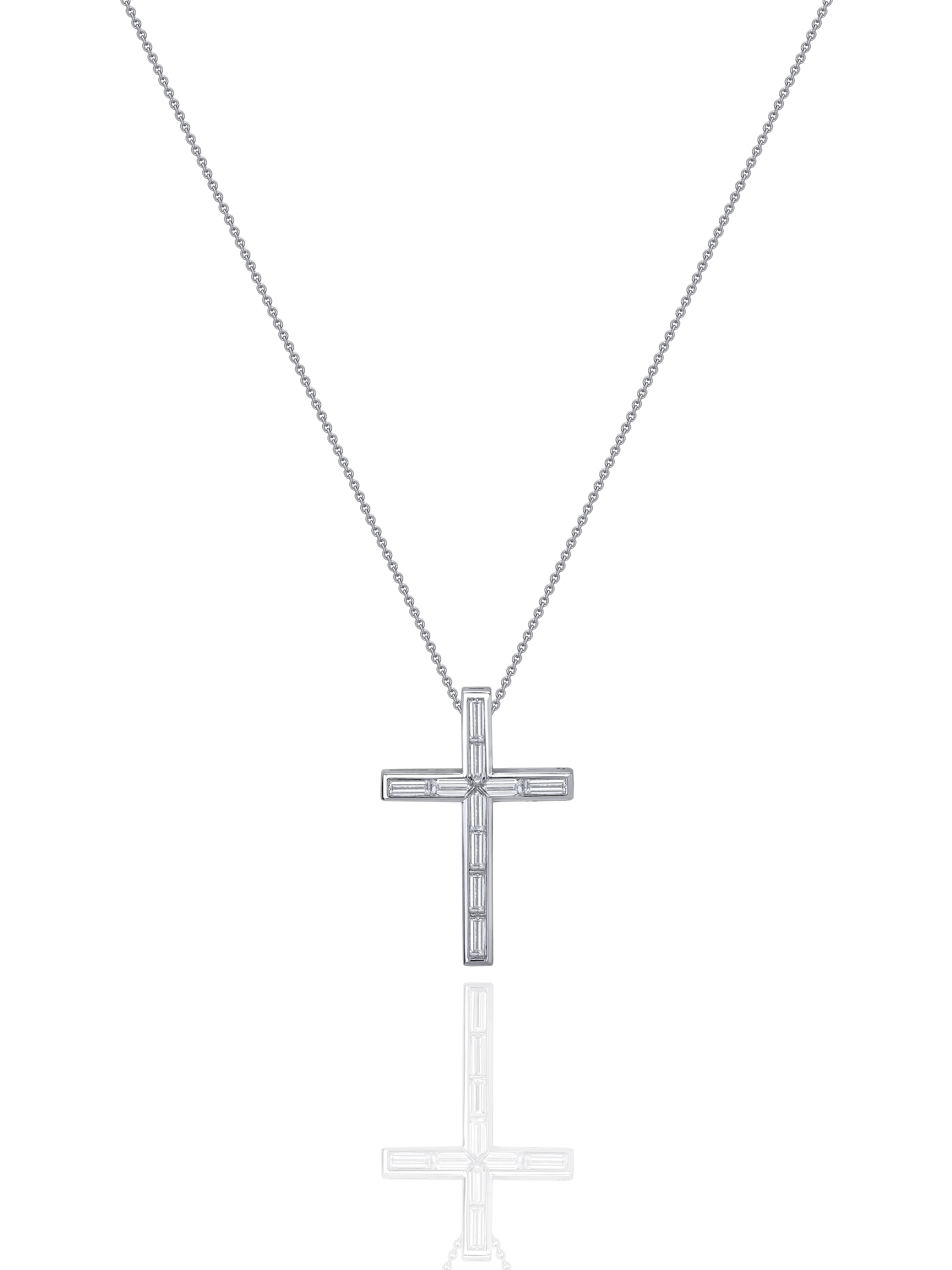 A chain and cross in white gold, encrusted with 10 baguette-cut diamonds with a total weight of 2.70 ct.