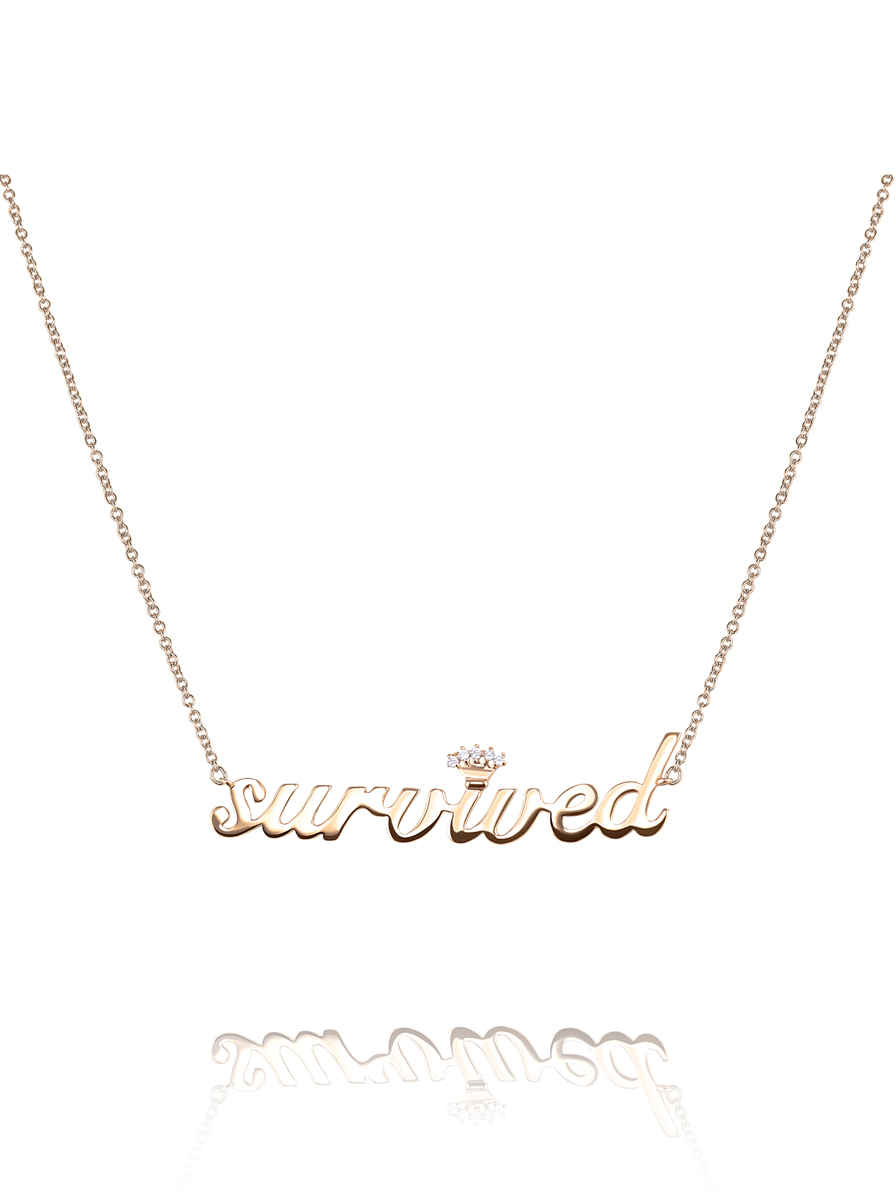 A "Survived" pendant necklace in rose gold with 18 round brilliant-cut diamonds with a total weight of 0.08 ct.