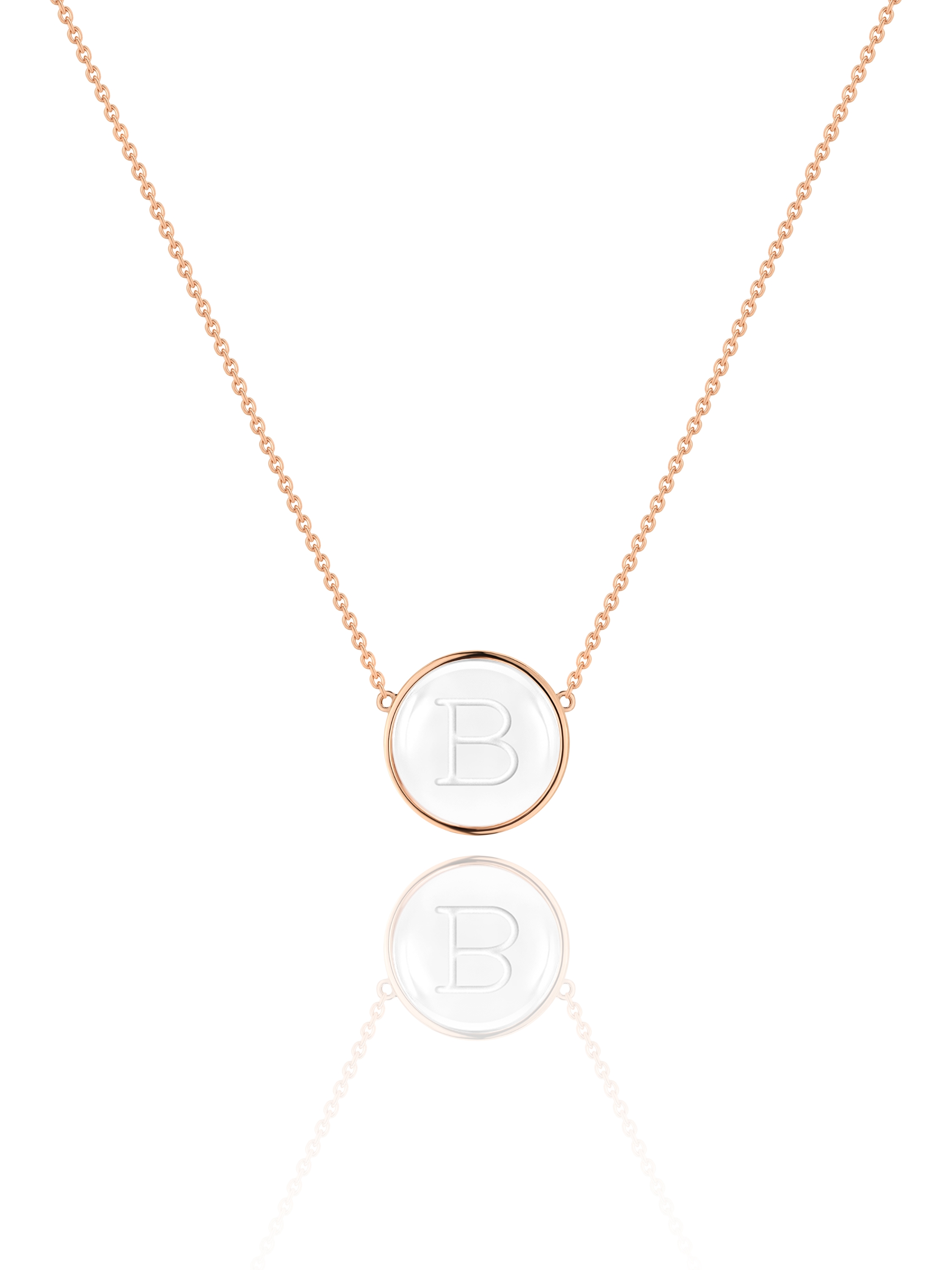 Rose gold necklace with letter B pendant with rock crystal 6.00 ct.