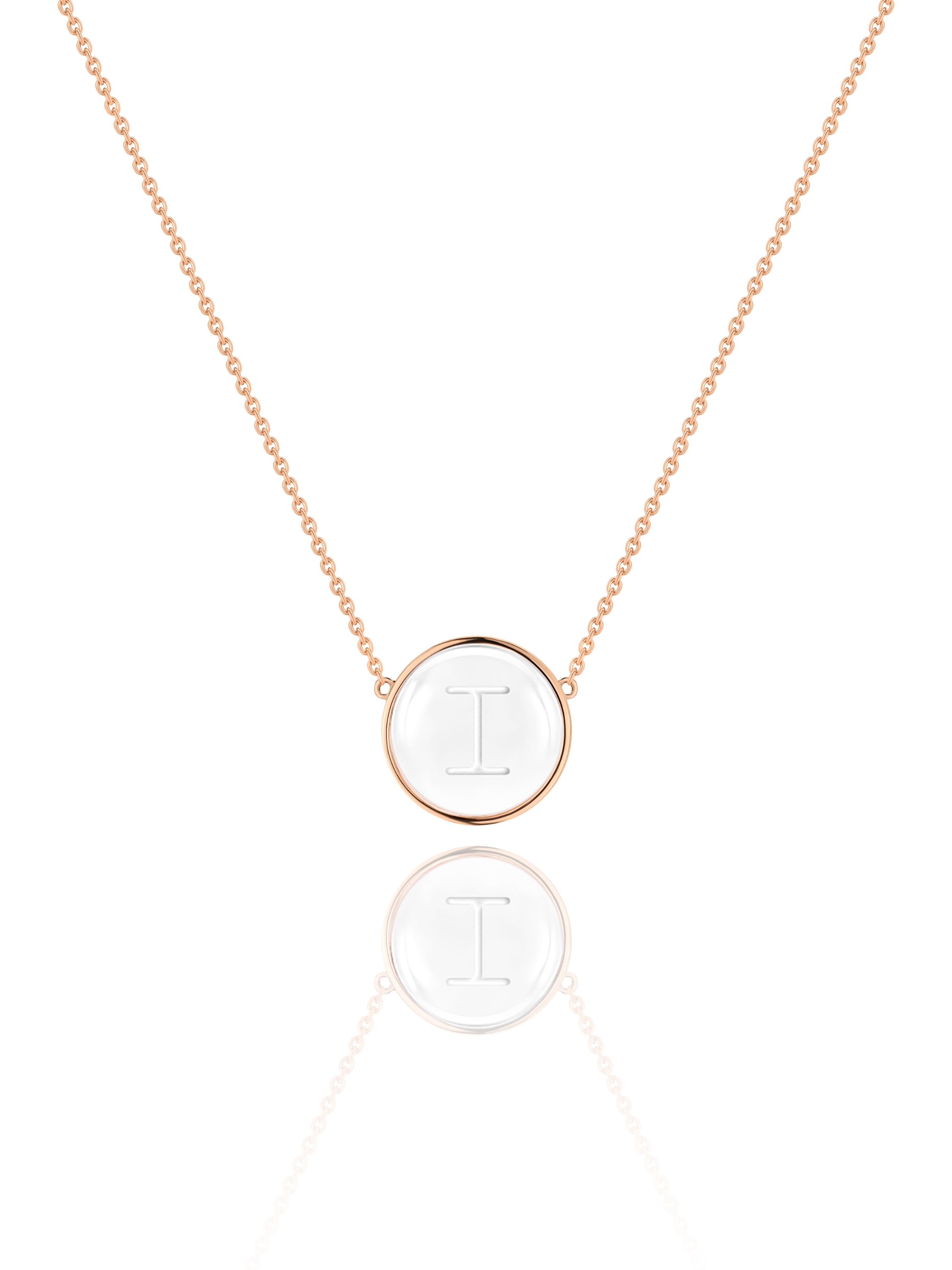 Rose gold necklace with letter I pendant with rock crystal