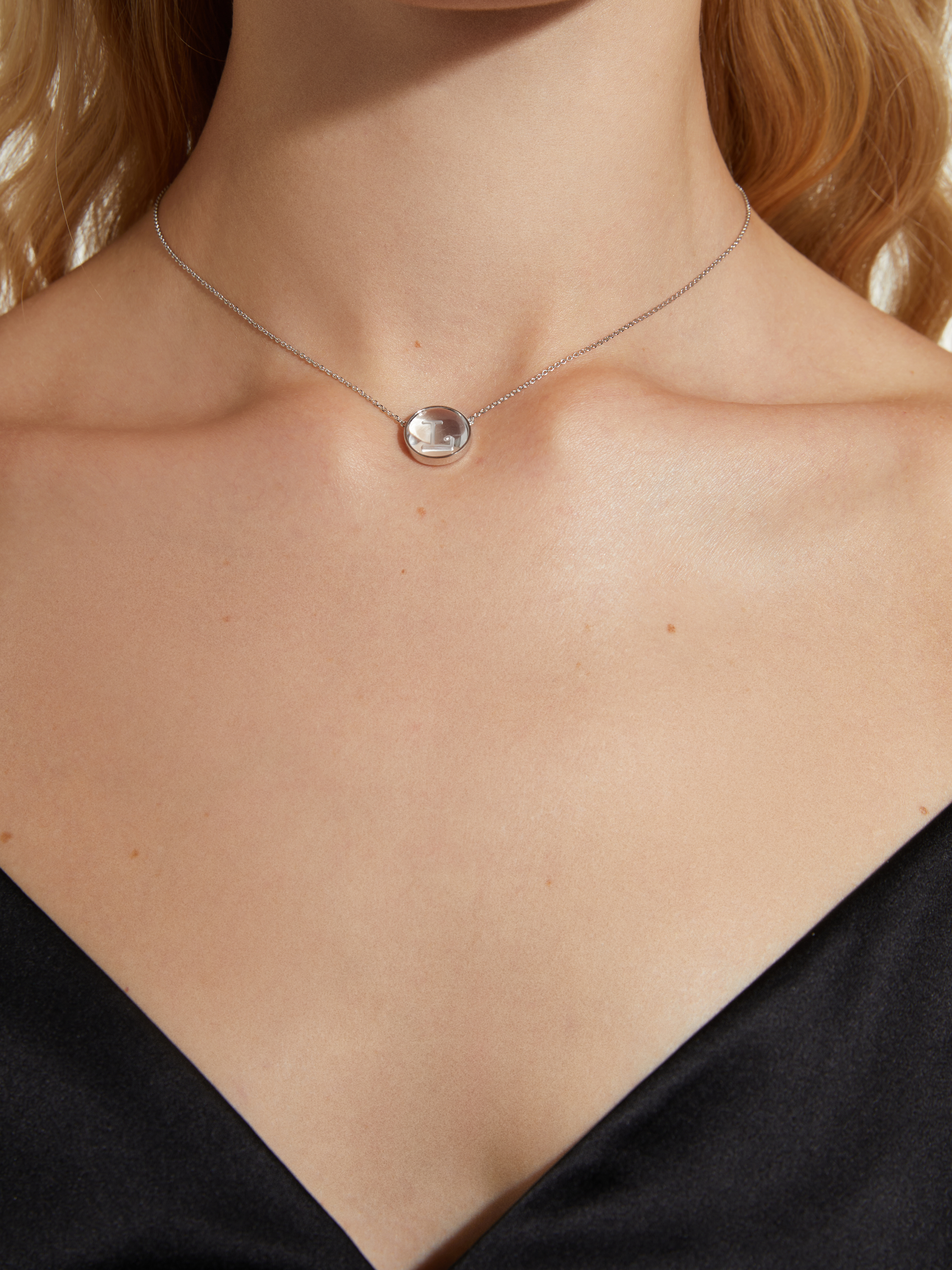 White gold necklace with a pendant featuring the letter L and a rock crystal weighing 6.12 ct.