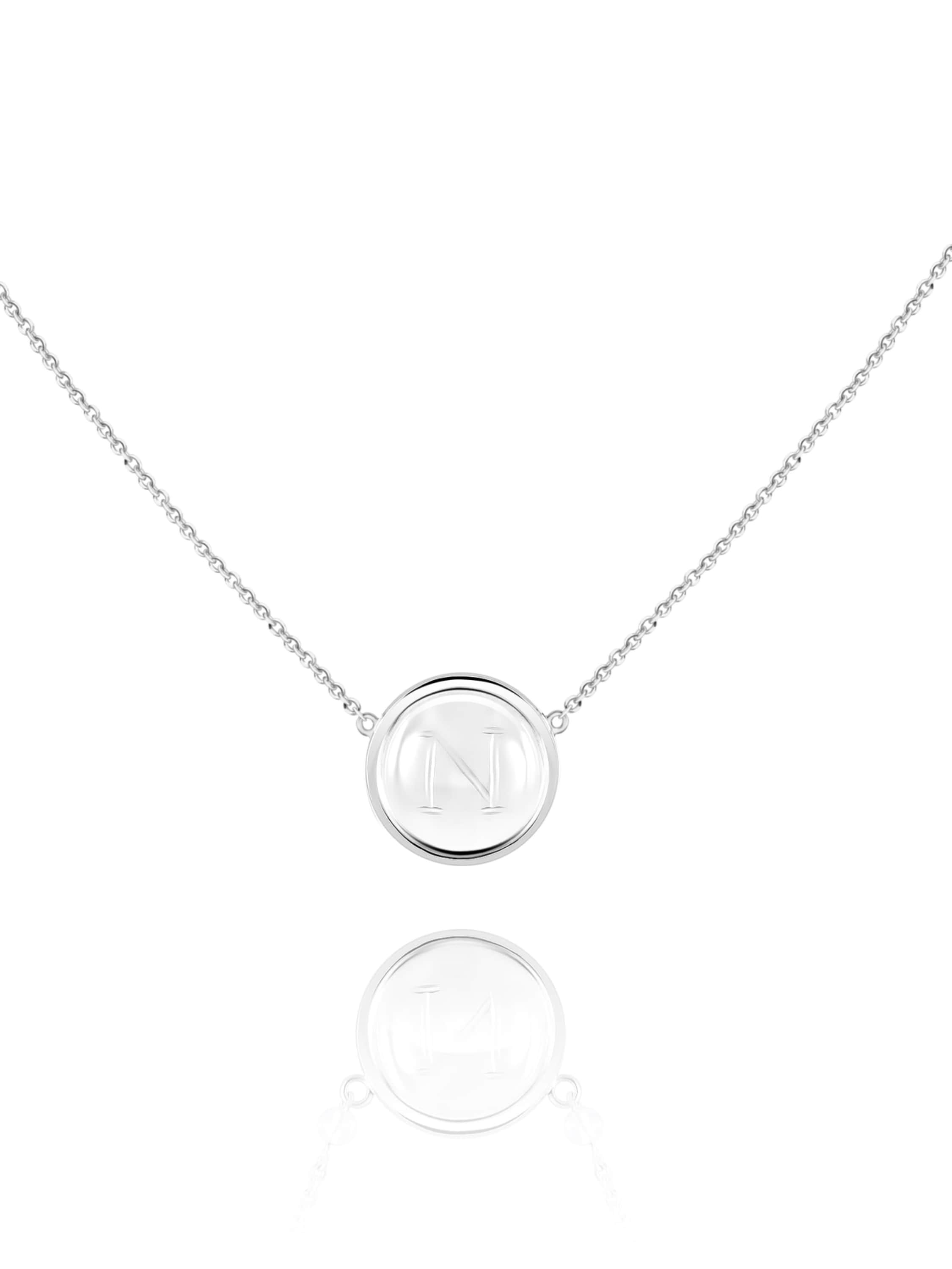 White gold necklace with an N letter pendant and rock crystal weighing 6.08 ct.