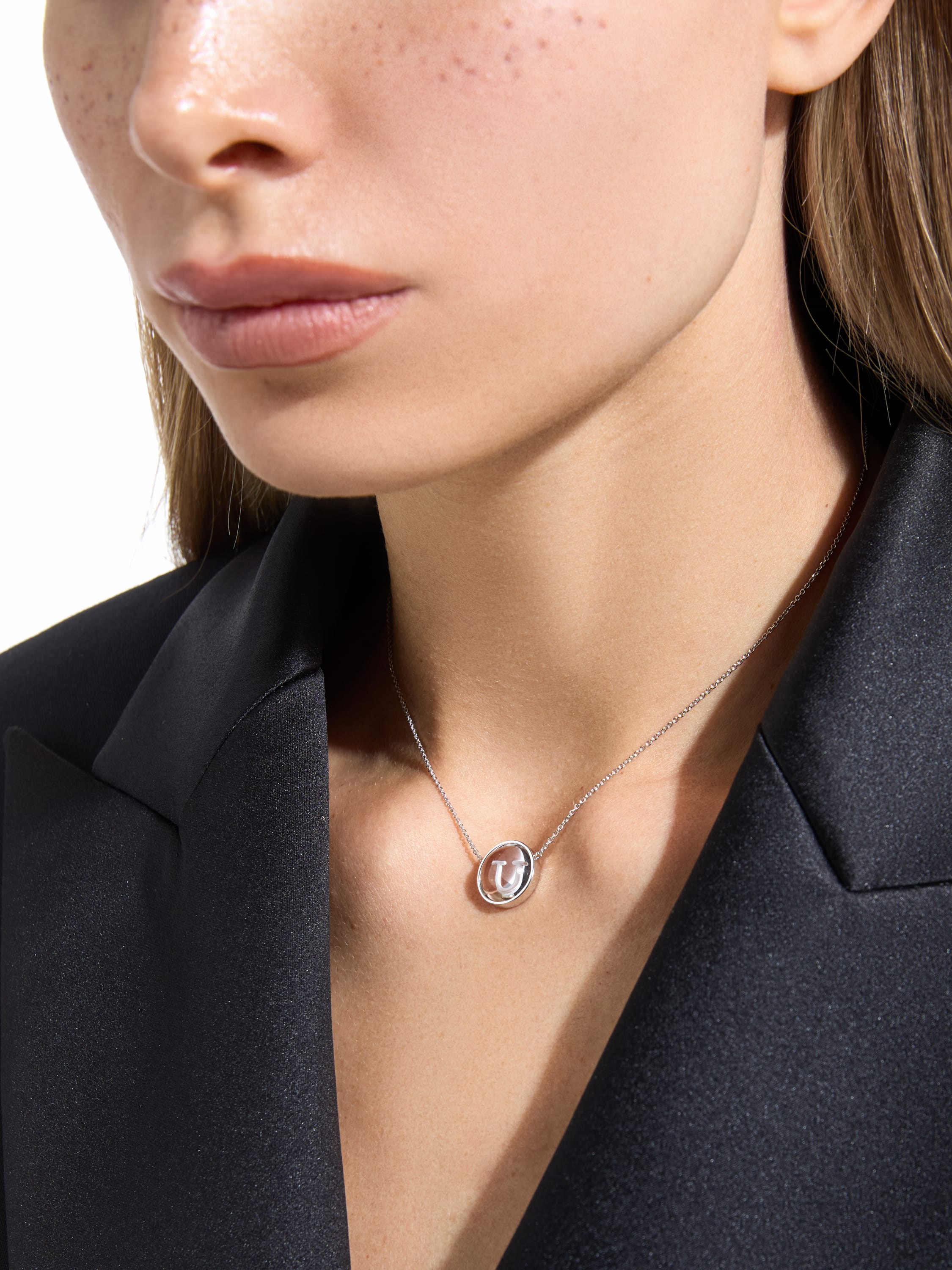 White gold necklace with letter U pendant with rock crystal 6.23 ct.