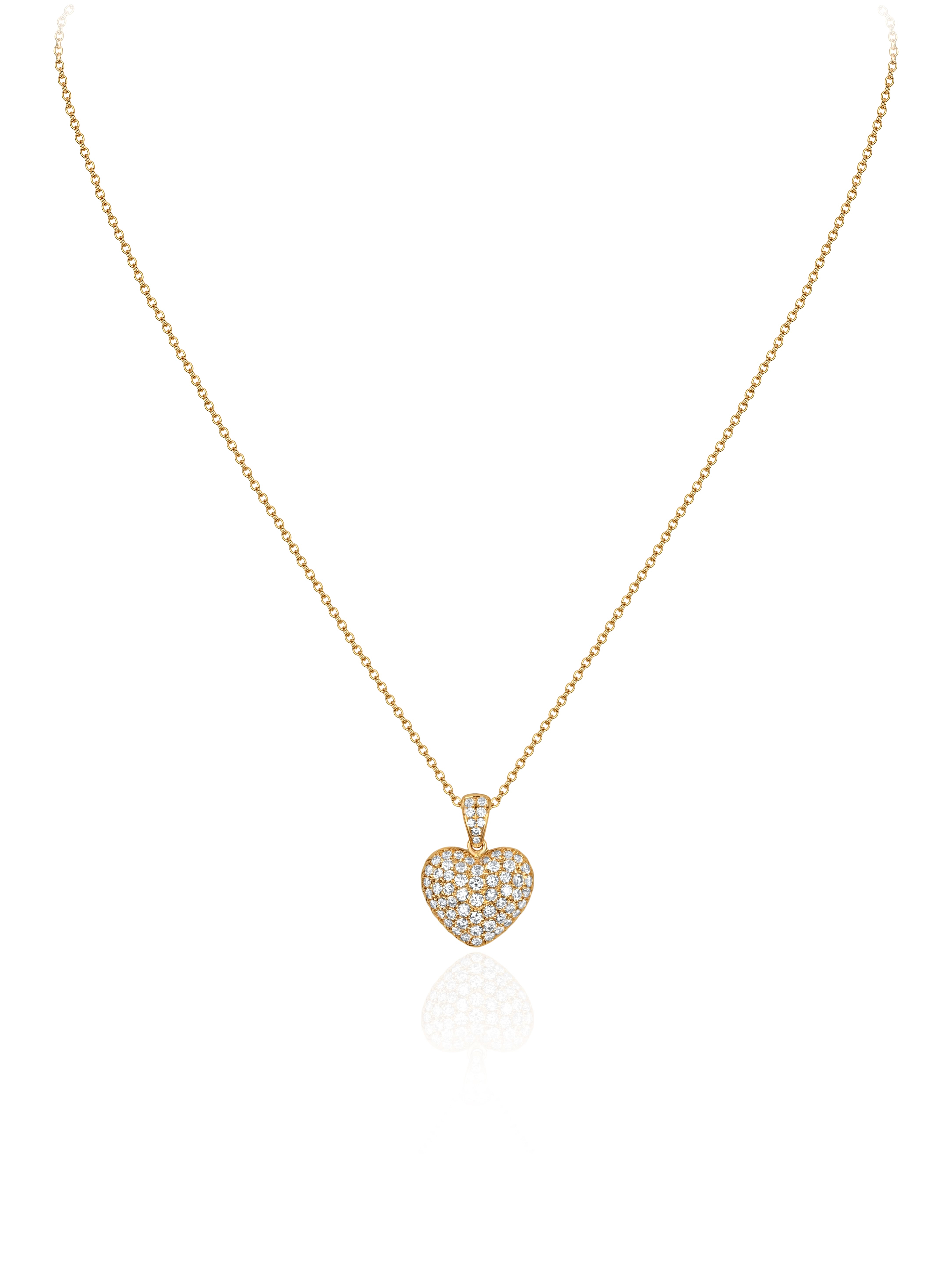 Necklace with a heart‑shaped gold pendant with 64 round brilliant‑cut diamonds with a total weight of 1.08 ct.