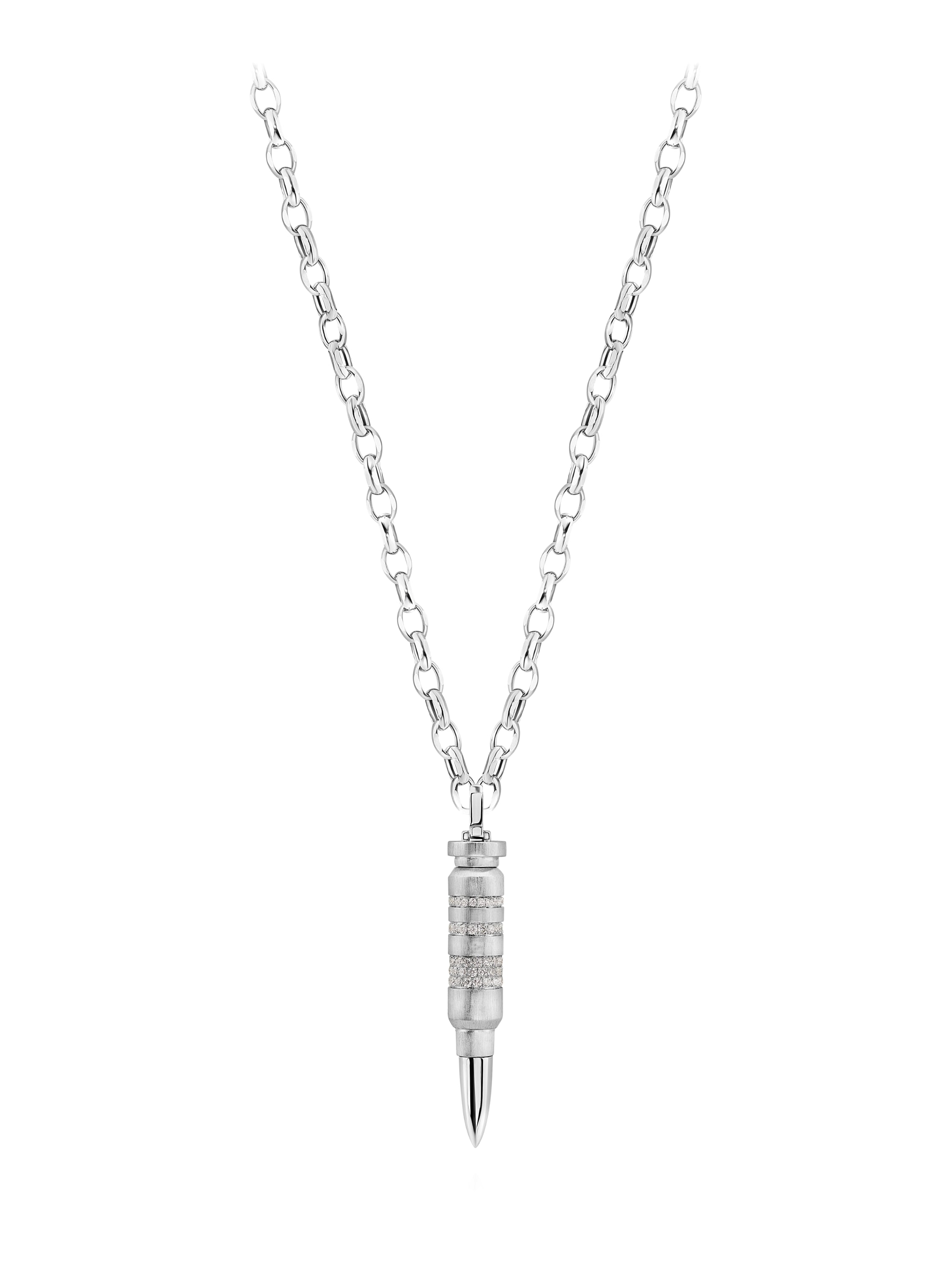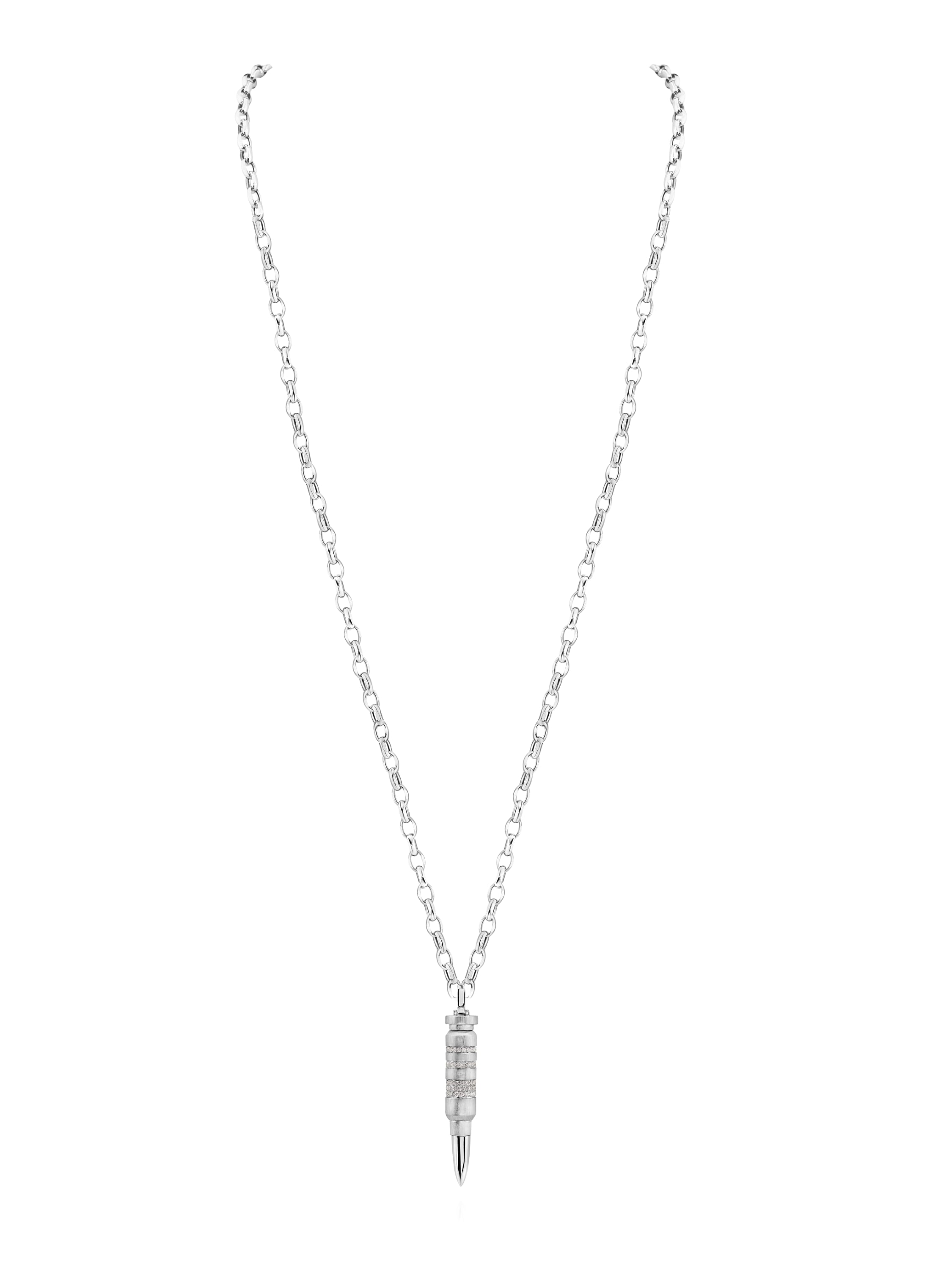 Necklace with a cartridge-shaped pendant with diamonds
